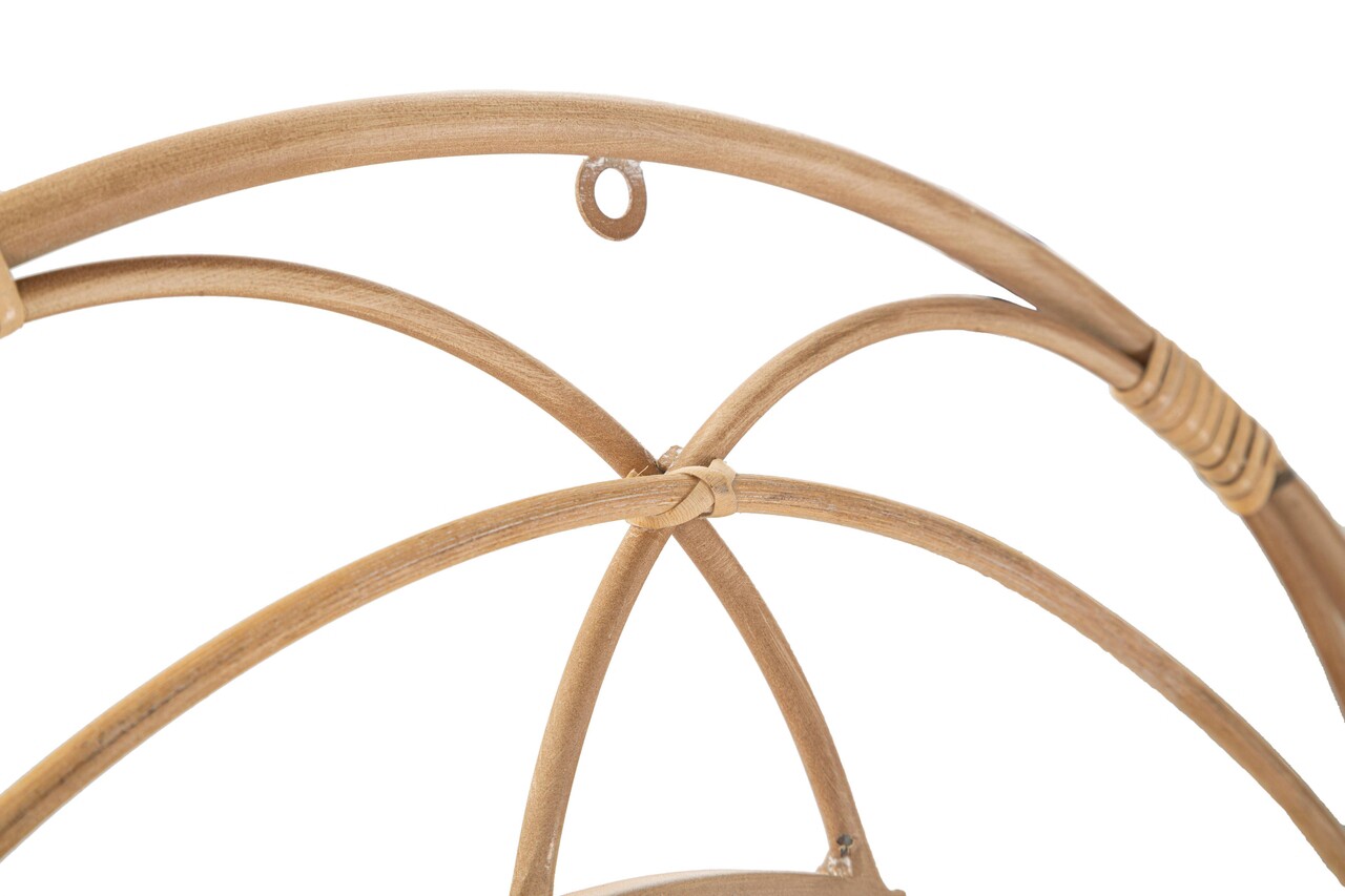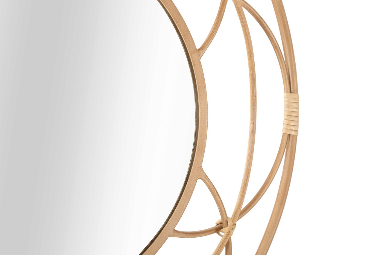 Oglinda rotunda de perete cu finisaj din ratan, design rotunjit si linii fluide care amintesc de petalele unei flori.