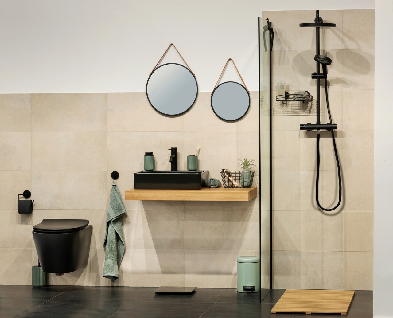 Oglinda decorativa, Wenko, Borrone, Ø 40 cm, fier/sticla, negru/gri