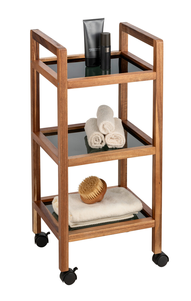 Organizator baie Fondi, Wenko, 35x31x76.5 cm, lemn acacia/sticla/plastic, maro/negru