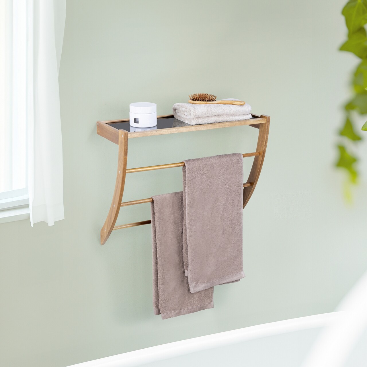 Cu polita si 3 suporturi pentru prosoape, ideal pentru baie, bucatarie sau hol.