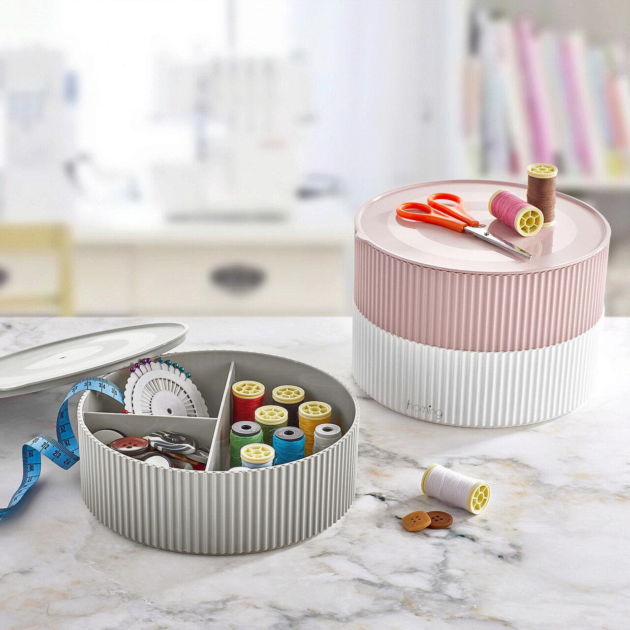 Organizator de birou, ORG, 18.5x18.5x6 cm, Plastic, Gri/Alb