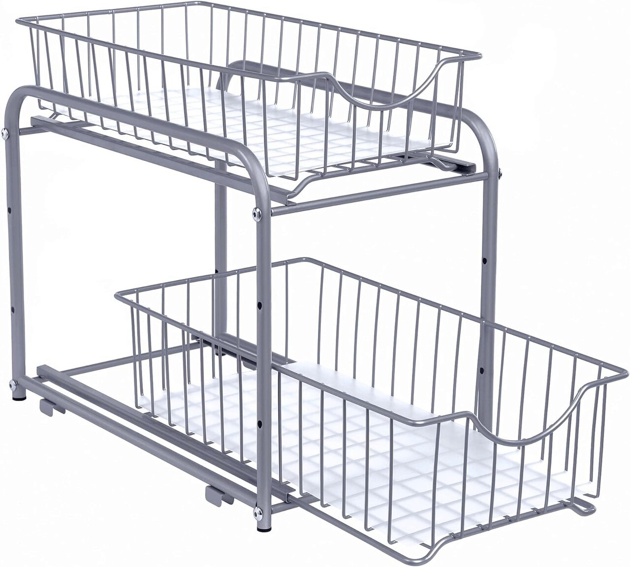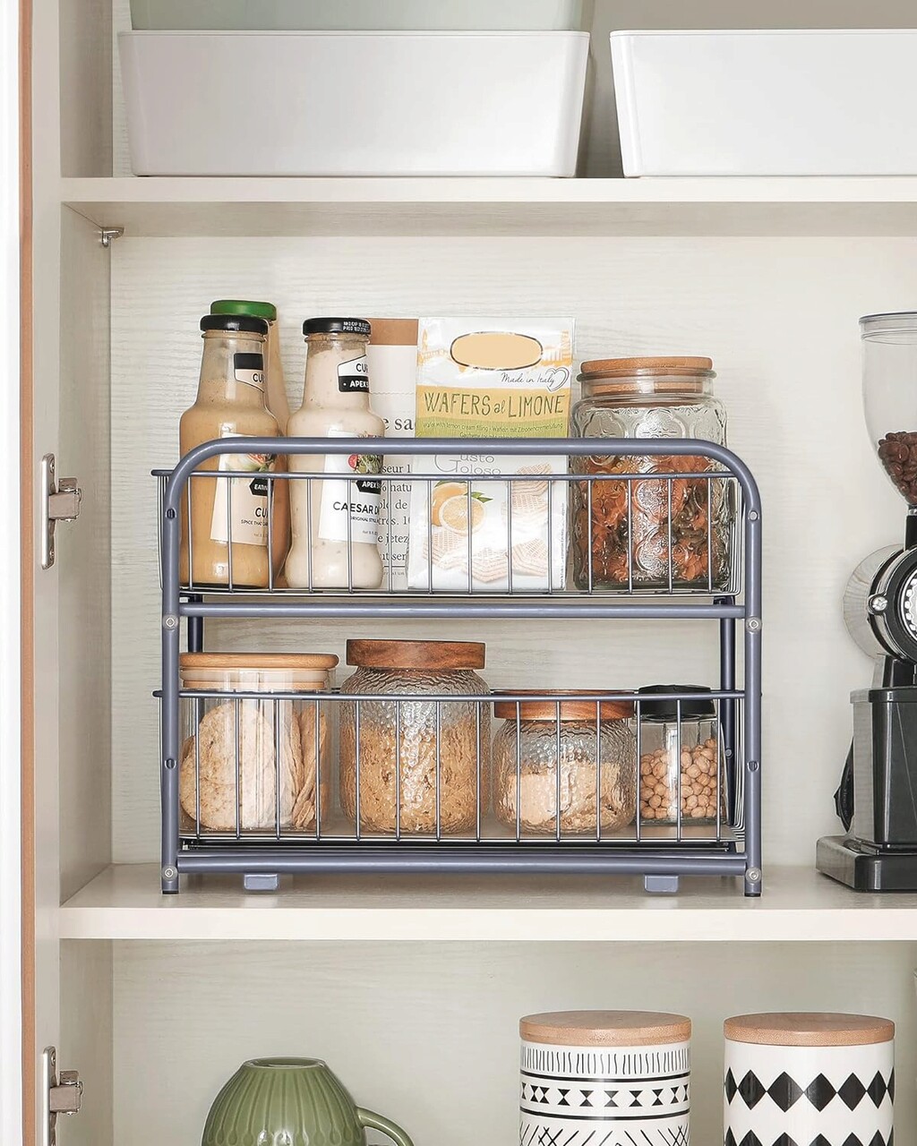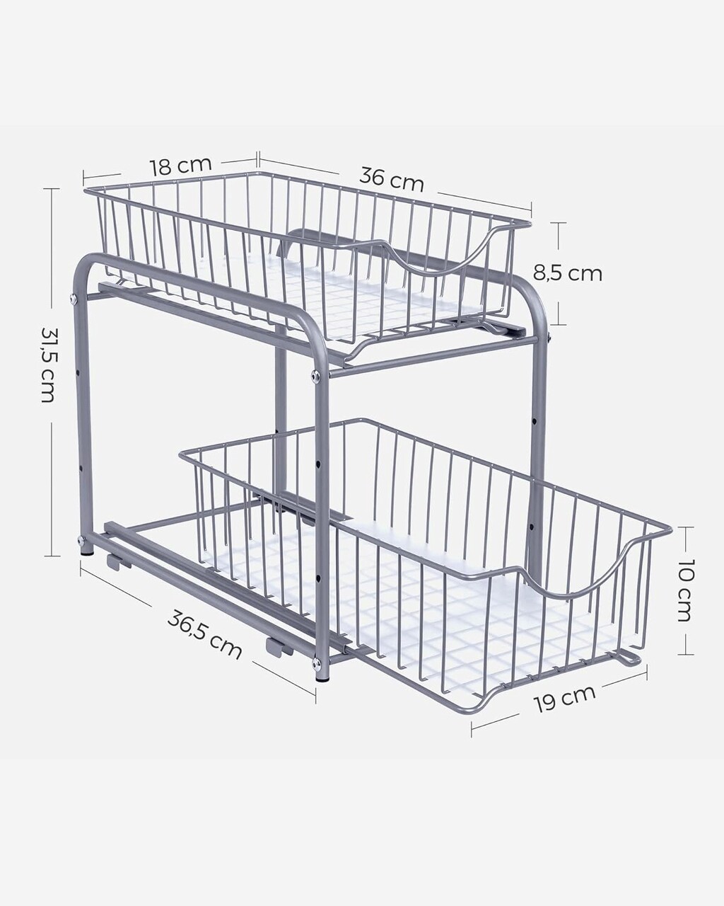 Organizator de bucatarie cu 2 cosuri glisante, Songmics, 36x21x25.5-31.5 cm, otel, argintiu
