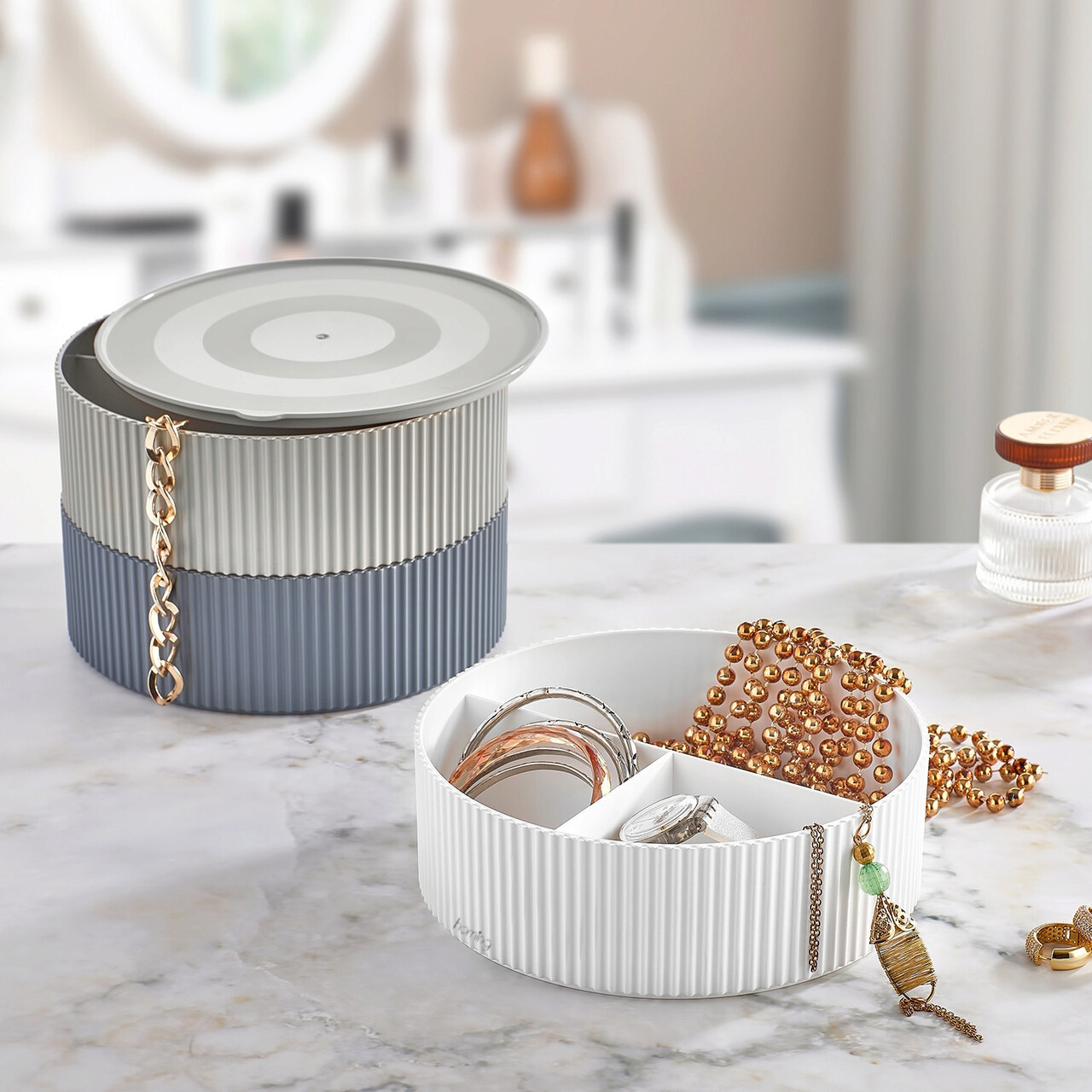 Organizator de machiaj, ORG, 18.5x18.5x6 cm, Plastic, Antracit/Alb