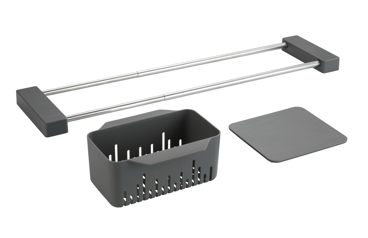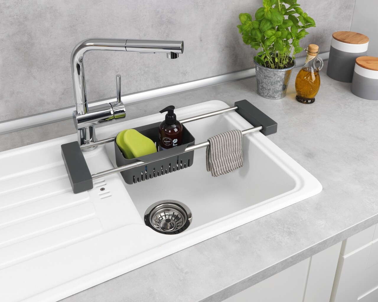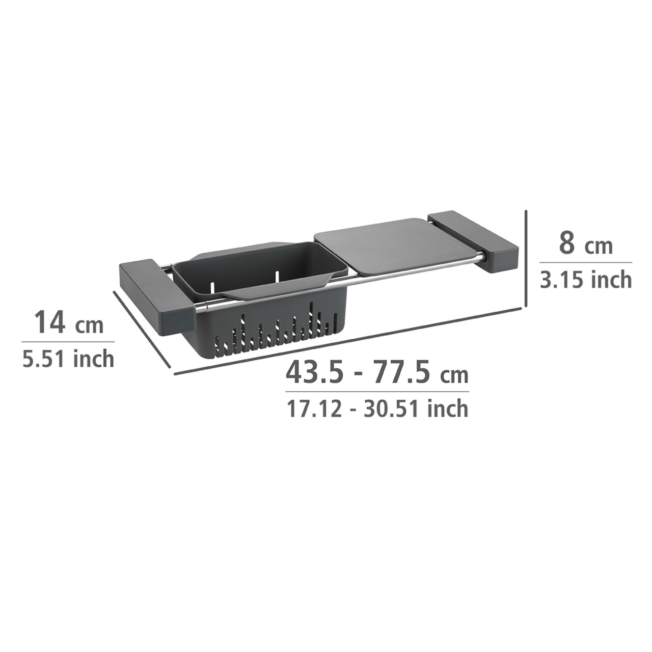 Organizator extensibill pentru chiuveta, Wenko, Caddy, 14 x 8 x 43.5/77.5 cm, plastic/inox, gri