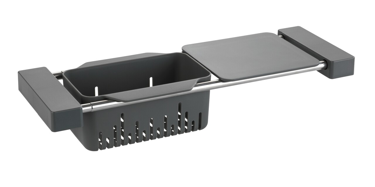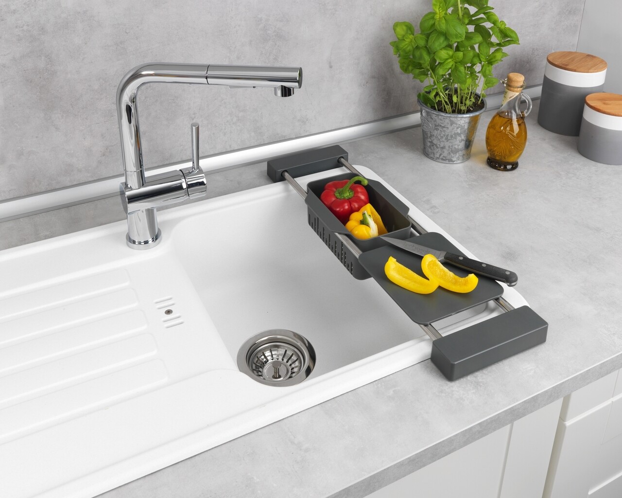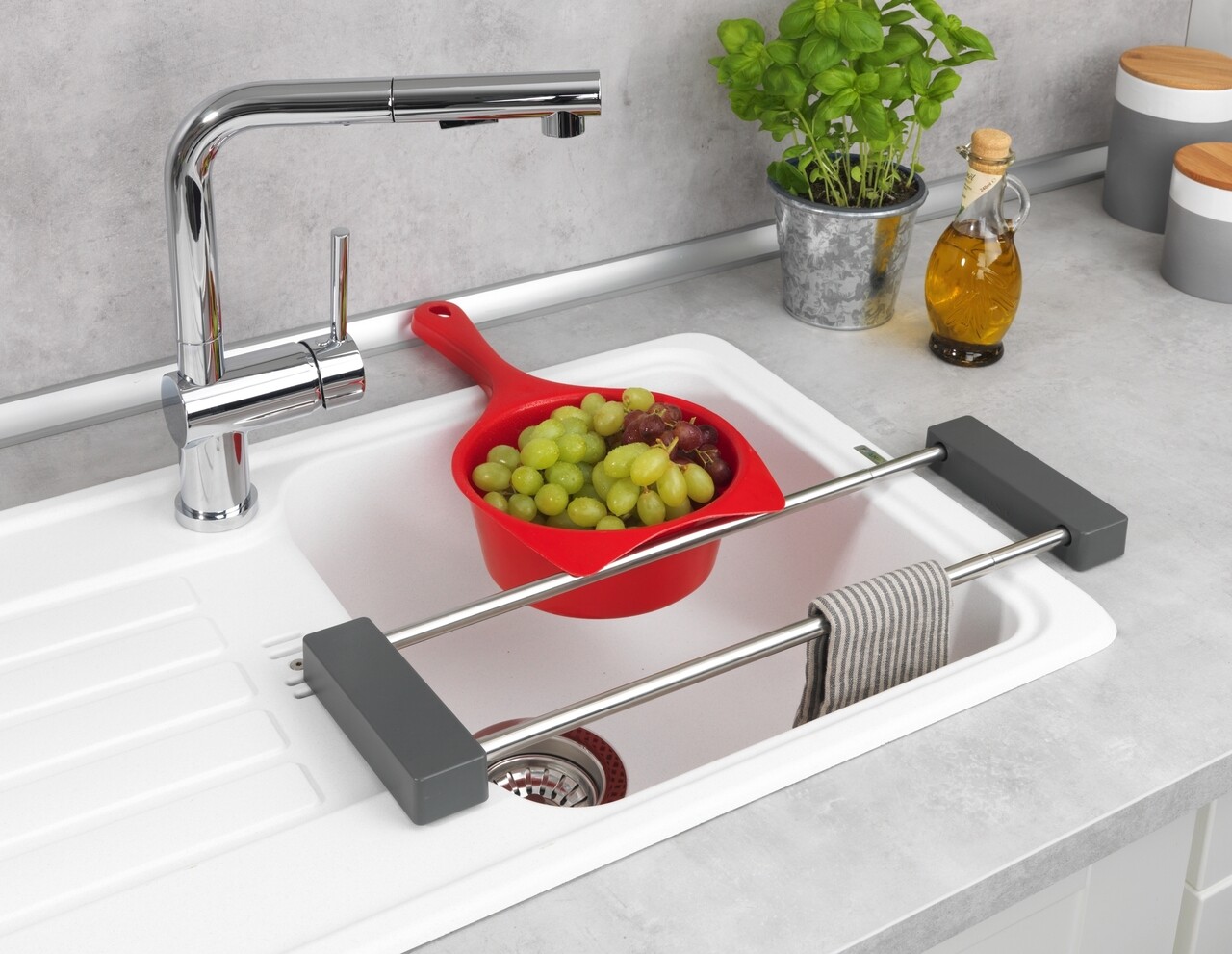 Organizator extensibill pentru chiuveta, Wenko, Caddy, 14 x 8 x 43.5/77.5 cm, plastic/inox, gri