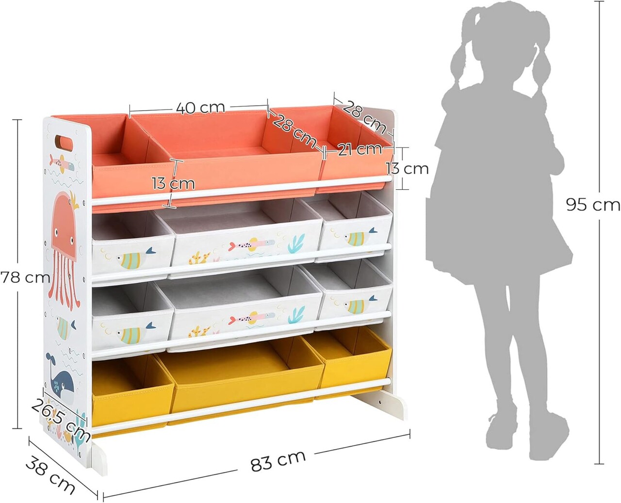 Organizator jucarii / mobilier camera copilului, Songmics, cu 12 cutii textile, 83x38x78 cm, MDF, multicolor