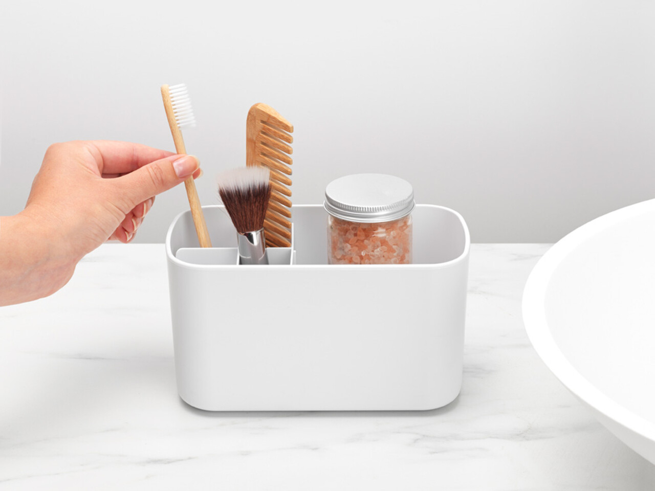 Organizator pentru accesorii baie, Brabantia, Caddy White, 19.5x9.8x11 cm, polipropilena, alb