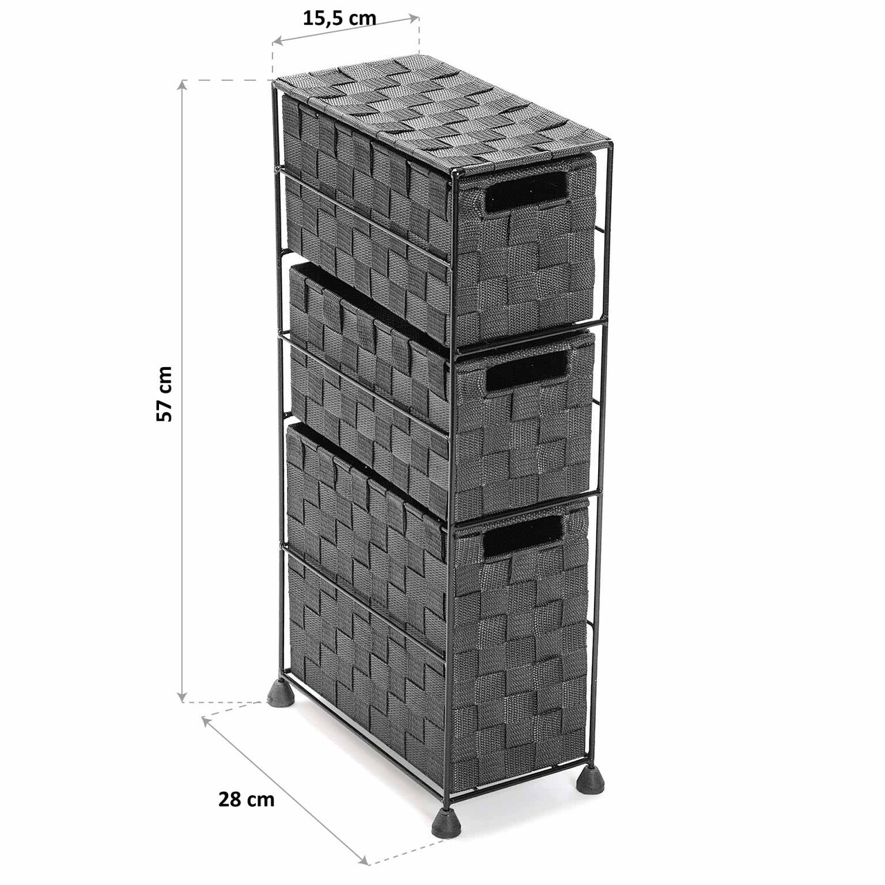 Organizator pentru baie cu 3 compartimente Melissa, Versa, 15.5x28x57 cm, gri deschis