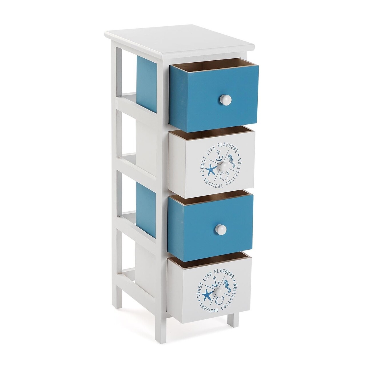 Organizator pentru baie cu 4 sertare Nautical, Versa, 25x30x72 cm, lemn de paulownia
