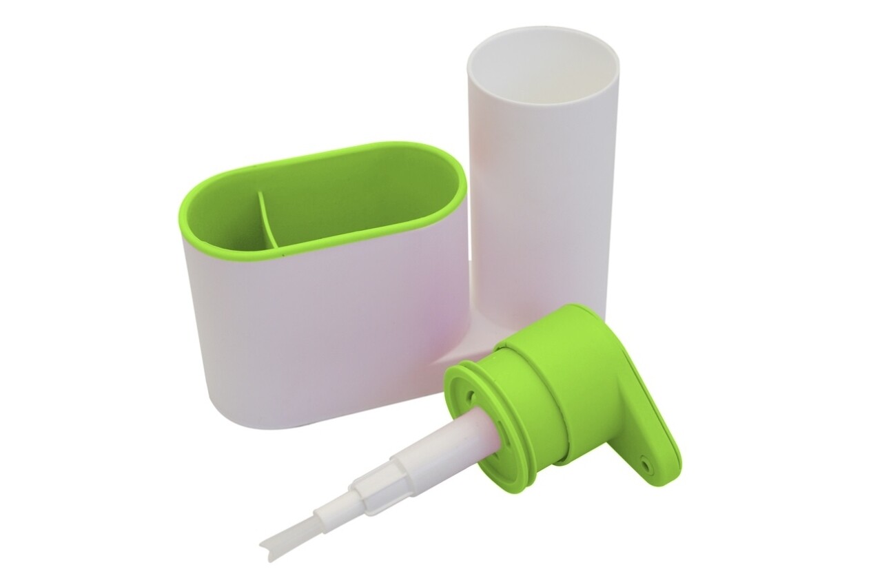 Organizatorul pentru chiuveta Bedora are incorporat un recipient cu pompita pentru sapun lichid si este prevazut cu un spatiu pentru periuta si pasta de dinti. Colorat si cu un design minimalist, acesta se incadreaza perfect in spatiile inguste din jurul chiuvetei.
