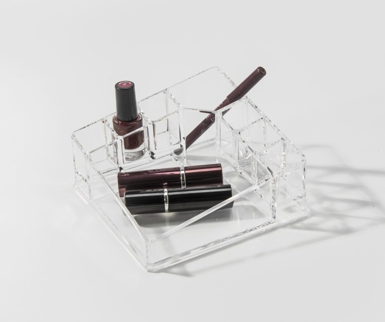 Organizator pentru cosmetice Compactor, 8 compartimente, 14x14x7.2 cm, transparent