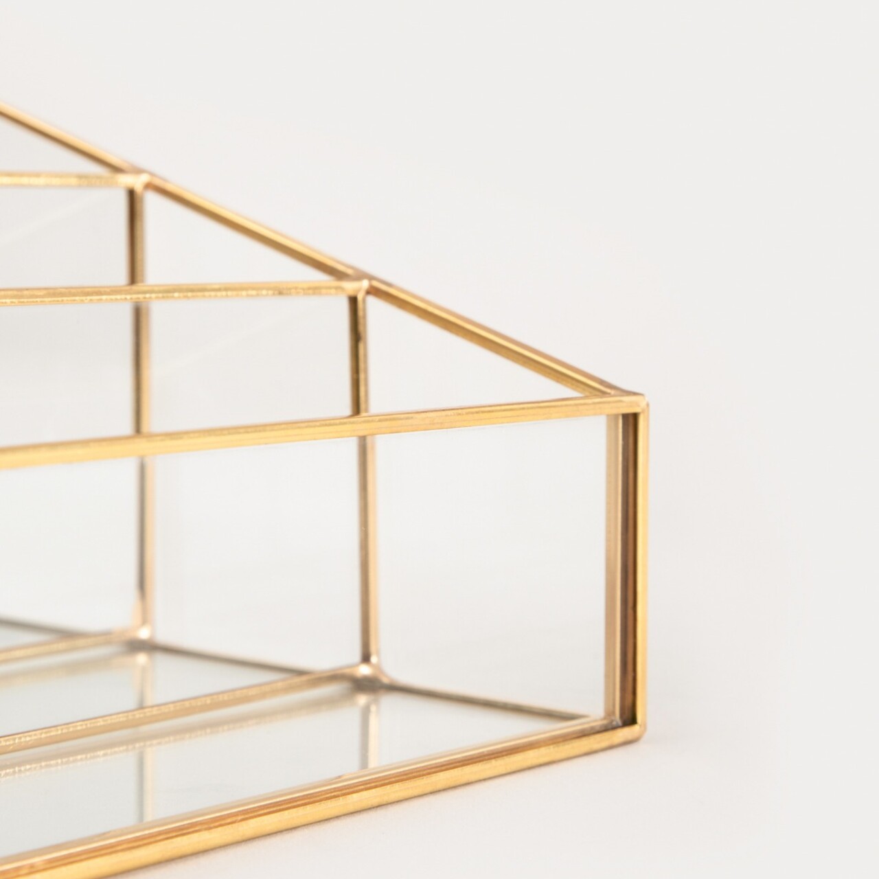 Organizator pentru cosmetice Grazia, Homla, 16x16x10 cm, sticla/metal, transparent/auriu
