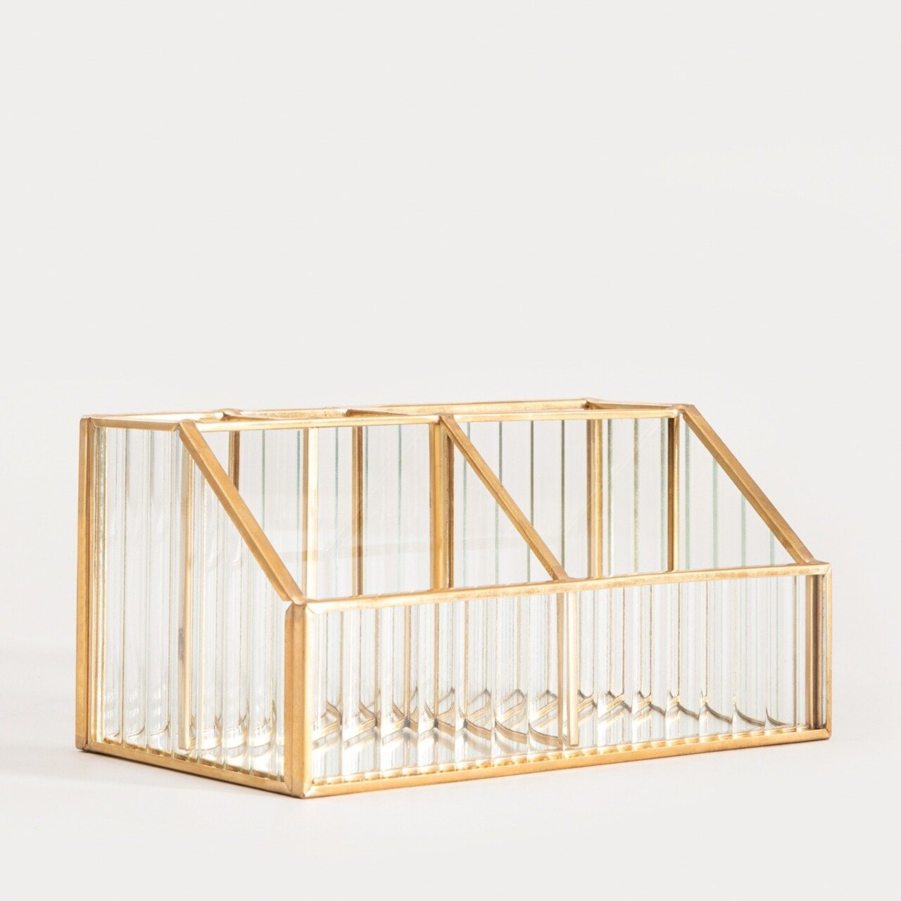 Organizator pentru cosmetice Grazia, Homla, 17.5x10x8.5 cm, sticla/metal, transparent/auriu