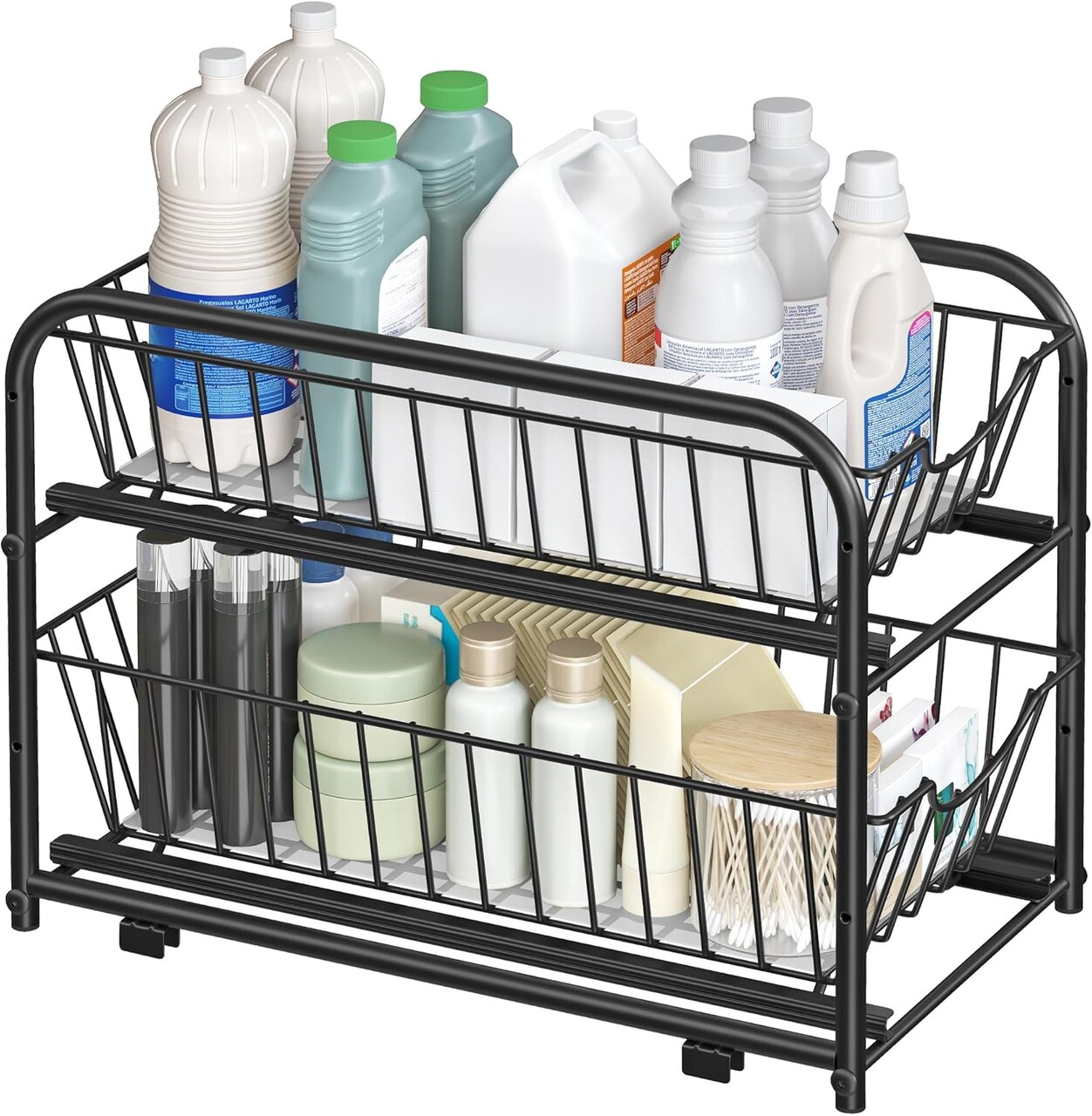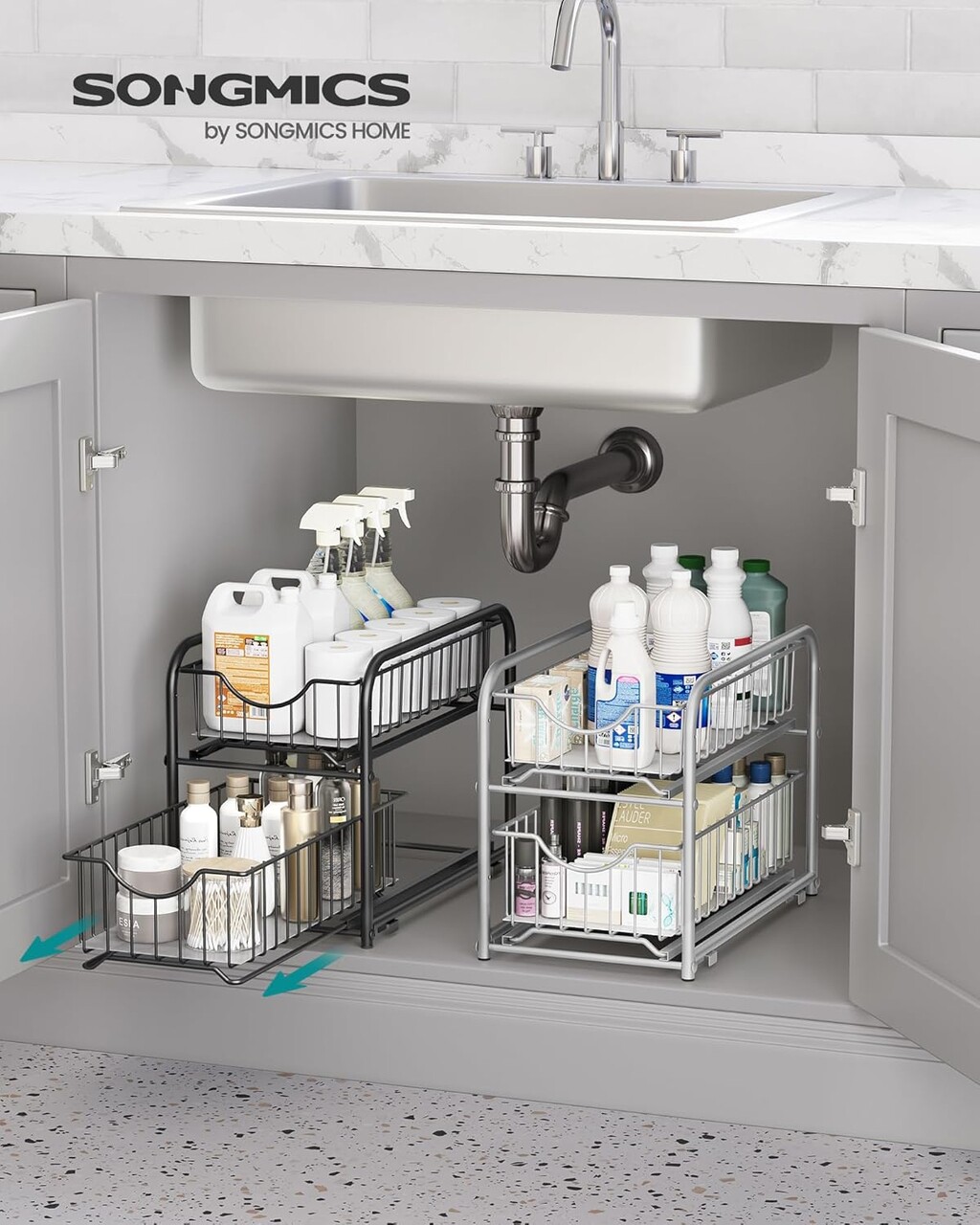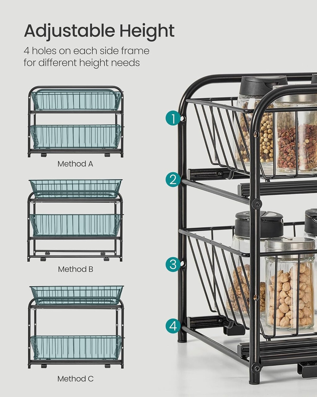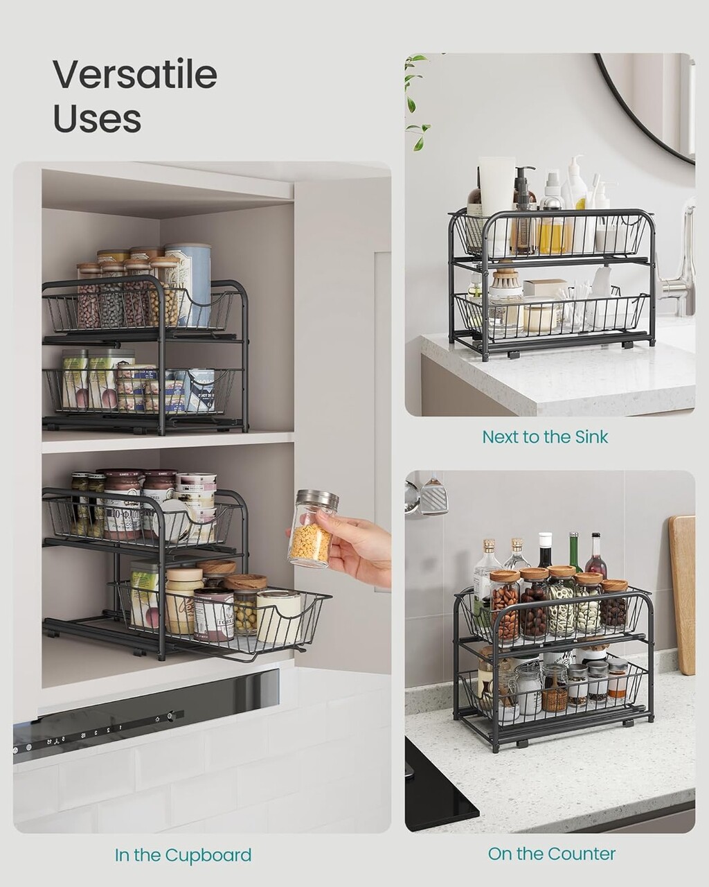 Organizator pentru dulap cu 2 cosuri glisante, Songmics, 26.5x21x31.5 cm, otel, negru