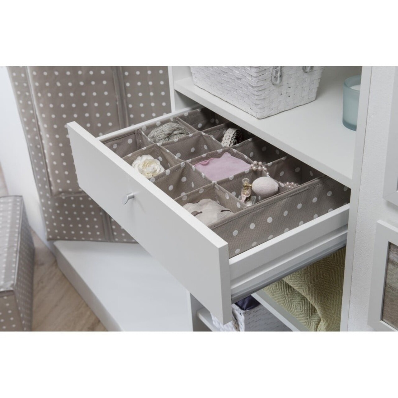 Organizatorul prevazut cu 9 compartimente este perfect pentru asezarea eficienta in dulap a lenjeriei intime, a sosetelor sau a accesoriilor de mici dimensiuni.