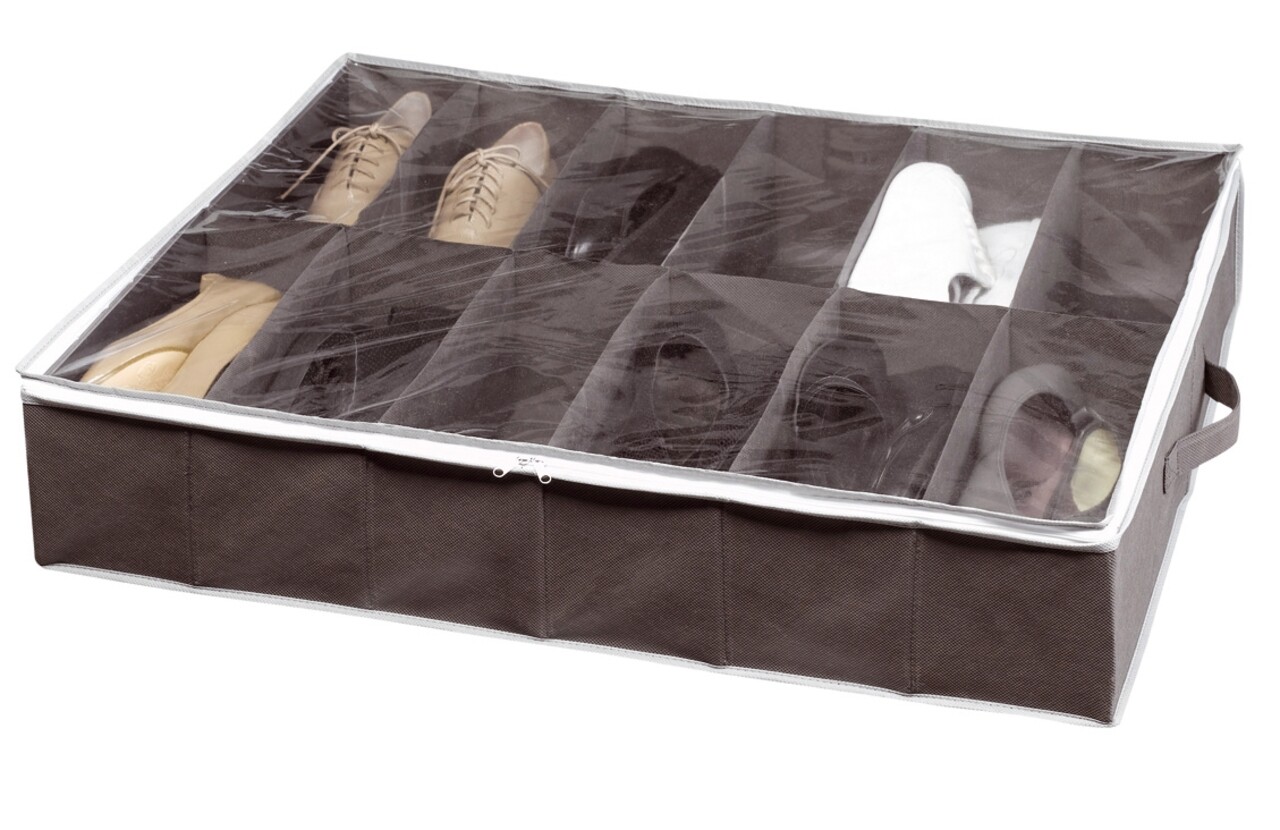 Organizator pentru incaltaminte Rivoli, Compactor, 12 perechi, 75 x 15 x 60 cm, PEVA, negru