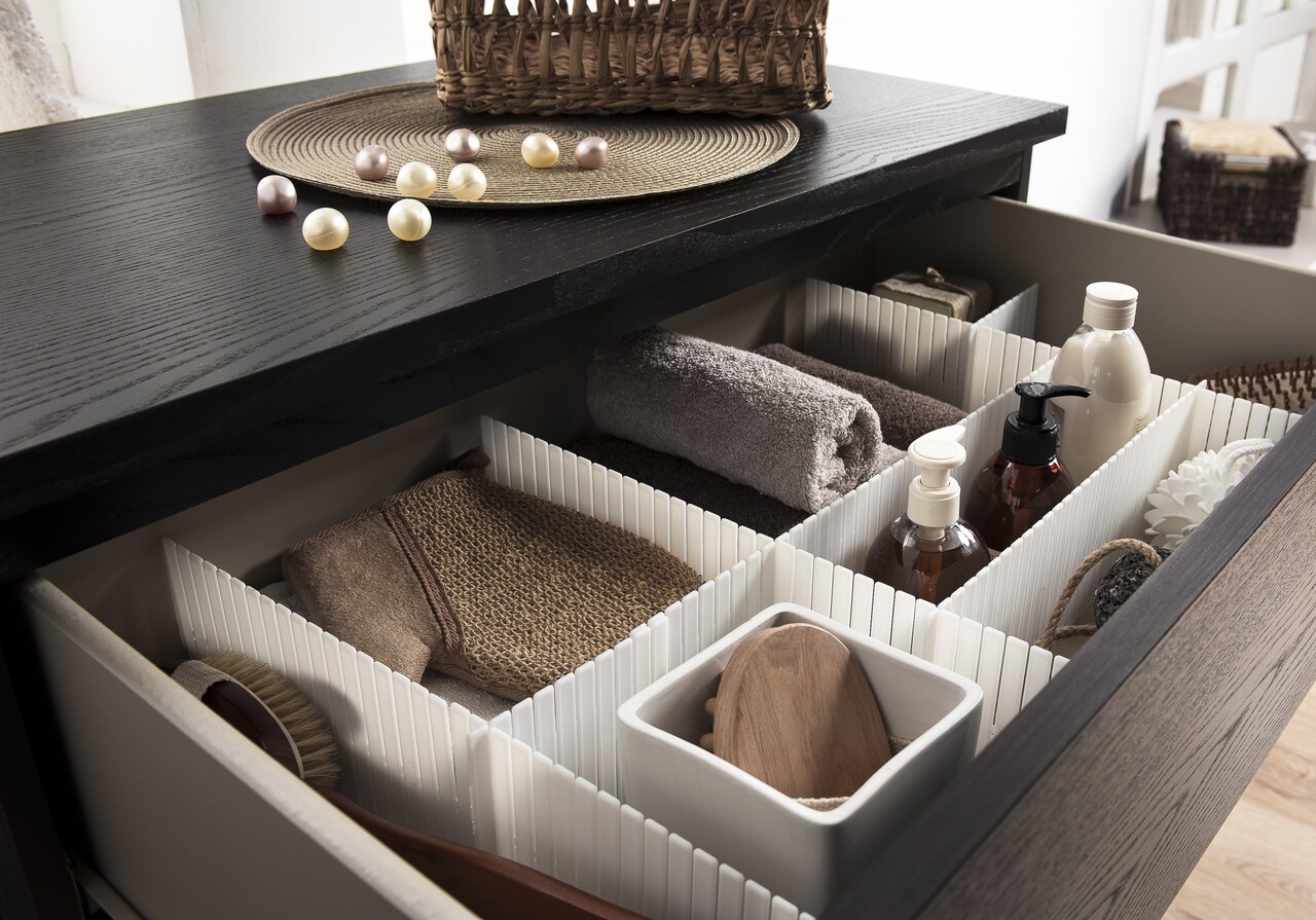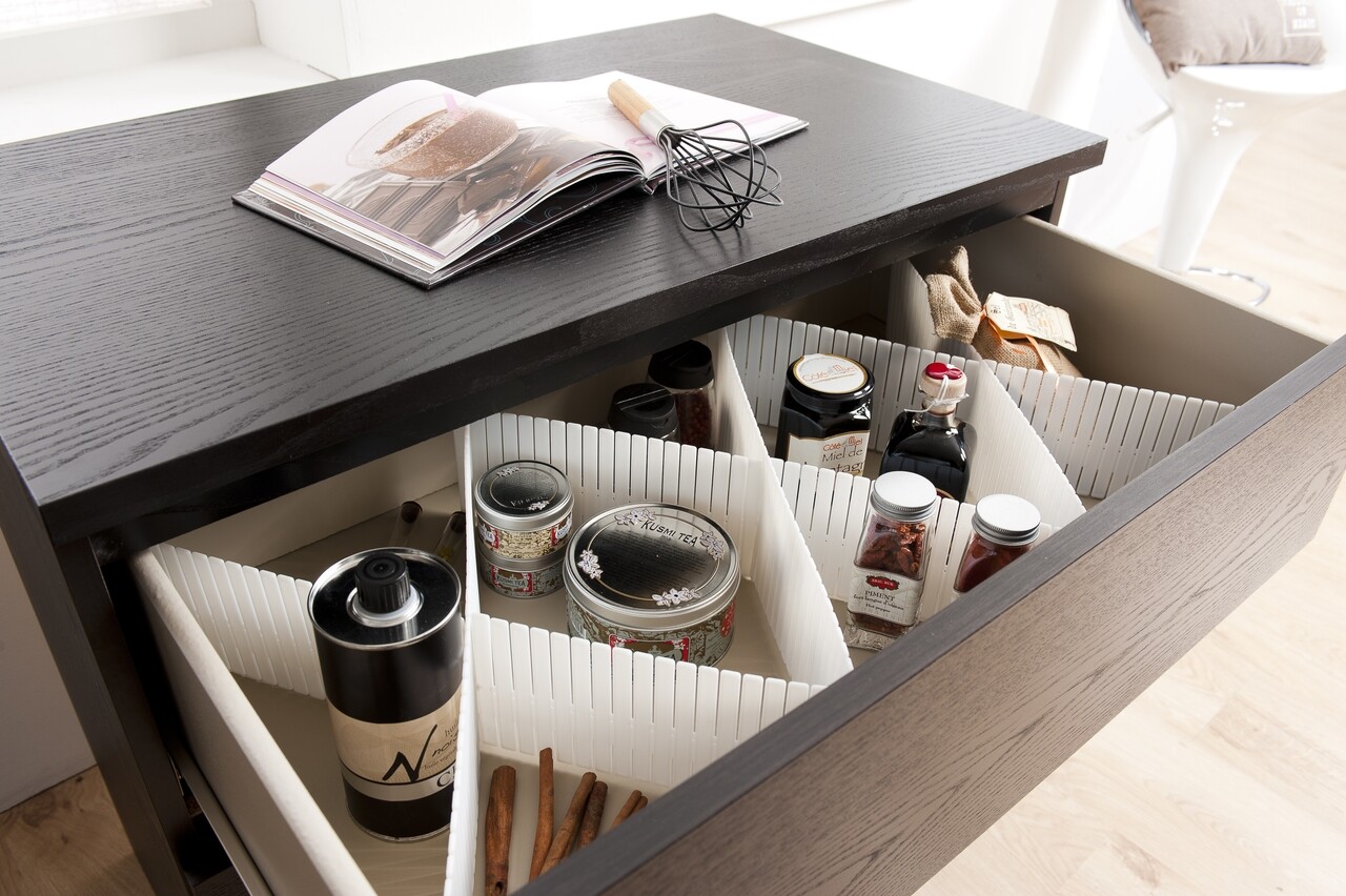 Organizatorul pentru sertar este foarte ingenios si usor de folosit. Piesele acestuia se imbina perfect si usor, dupa necesitati, adaptandu-se perfect pe dimensiunile sertarului.