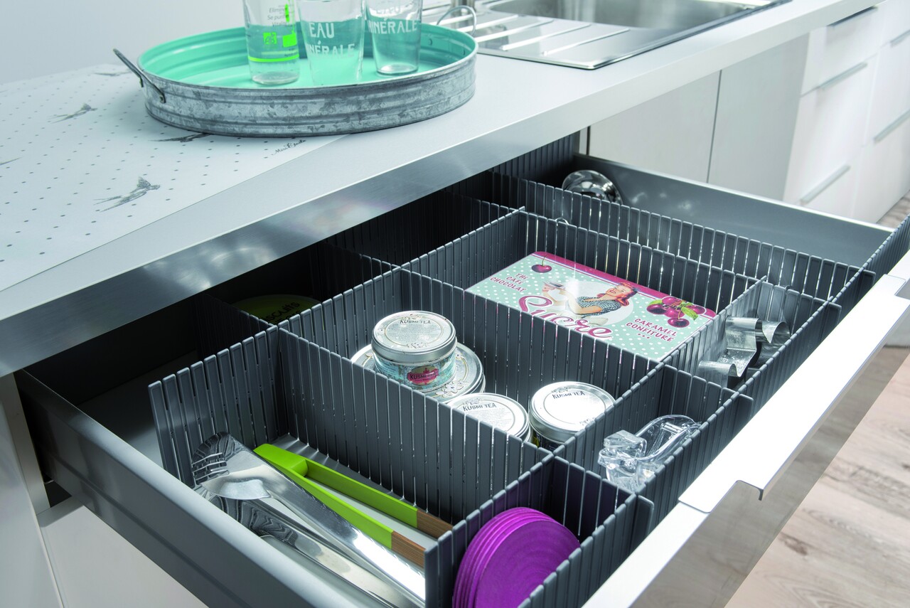 Organizatorul pentru sertar este foarte ingenios si usor de folosit. Piesele acestuia se imbina perfect si usor, dupa necesitati, adaptandu-se perfect pe dimensiunile sertarului.
