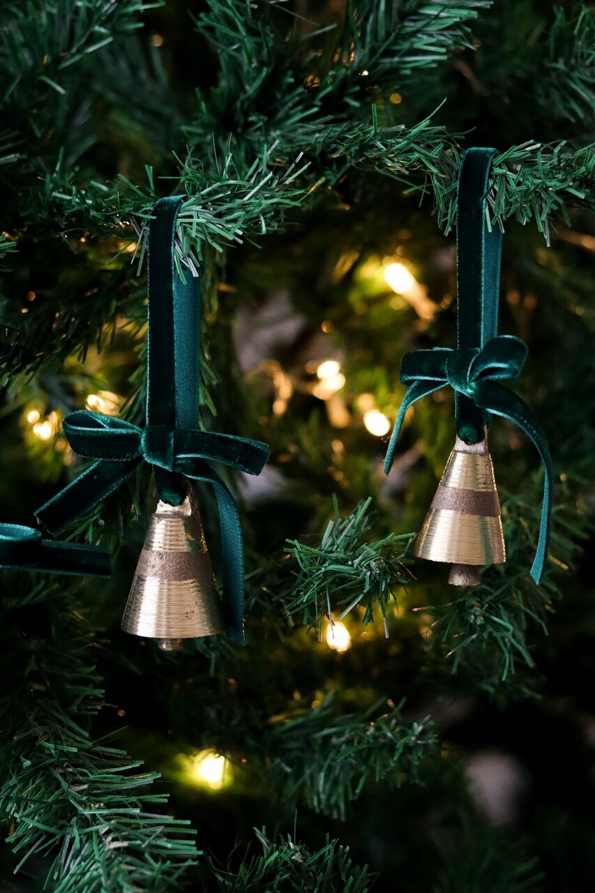 Ornament de brad de Crăciun, BSY236, 5x12 cm, Catifea, Verde inchis