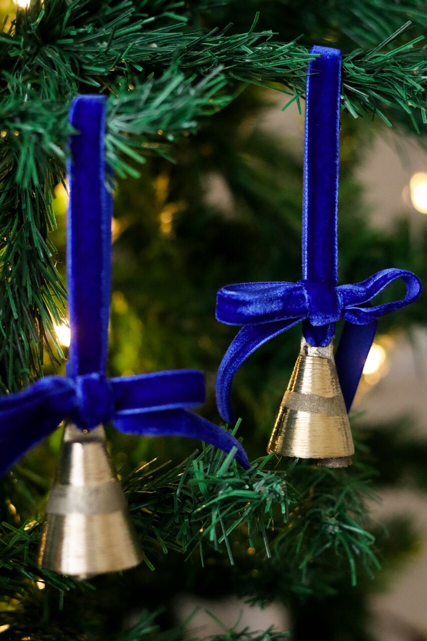 Ornament de brad de Crăciun, BSY244, 4x12 cm, Catifea, Albastru