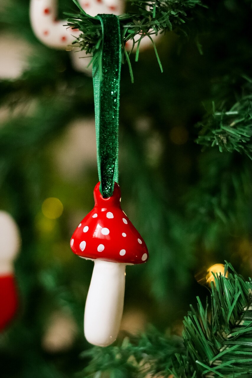 Ornament de brad de Crăciun, BSY513, 4x8.5 cm, Ceramica, Alb/Rosu