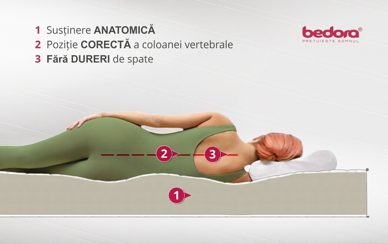 Recomandat pentru toate pozitiile de dormit: dormit pe spate, lateral, abdomen;
