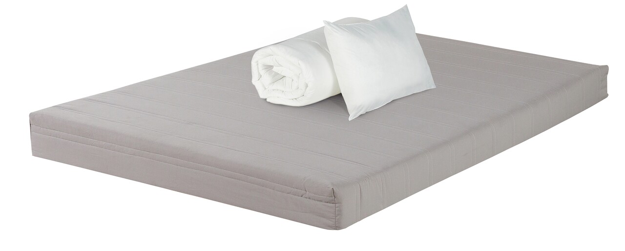 Pachetul Bedora Combo include trei produse de baza necesare pentru somn: o saltea, o perna si o pilota. Structura saltelei este realizata dintr-un strat flexibil de 14 cm de spuma poliuretanica, care asigura o pozitie naturala pentru coloana in timpul somnului. Pentru o igiena adecvata, husa din fibra naturala de bumbac poate fi indepartata.