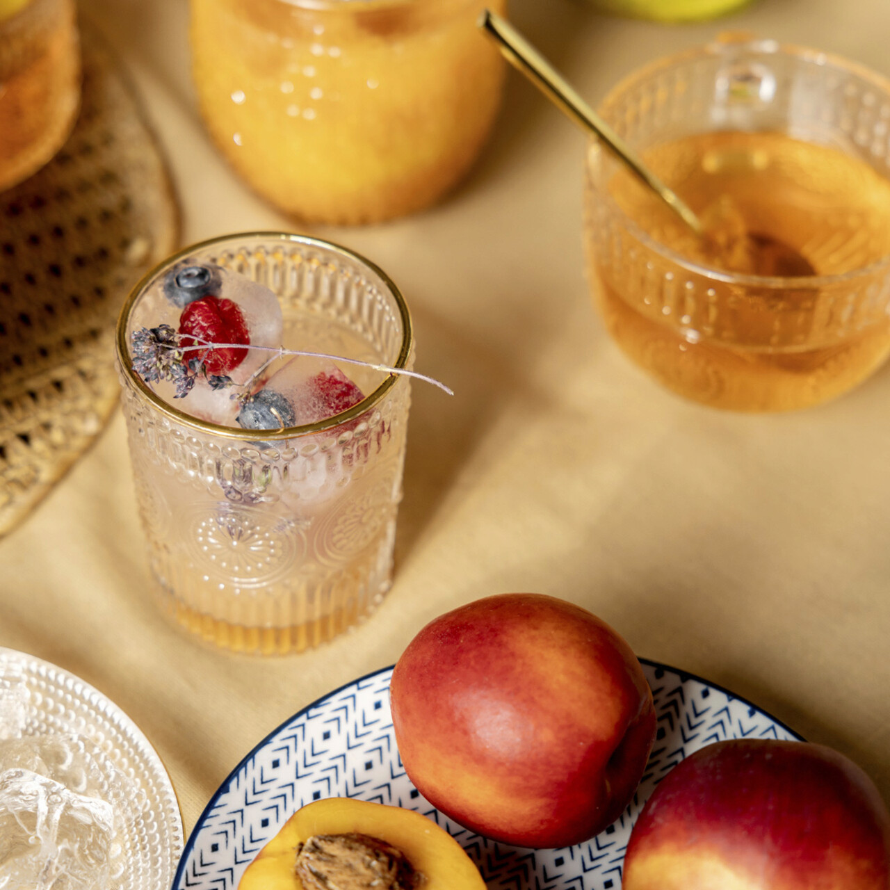 Pahar Barrel, Homla, 300 ml, sticla, transparent/auriu