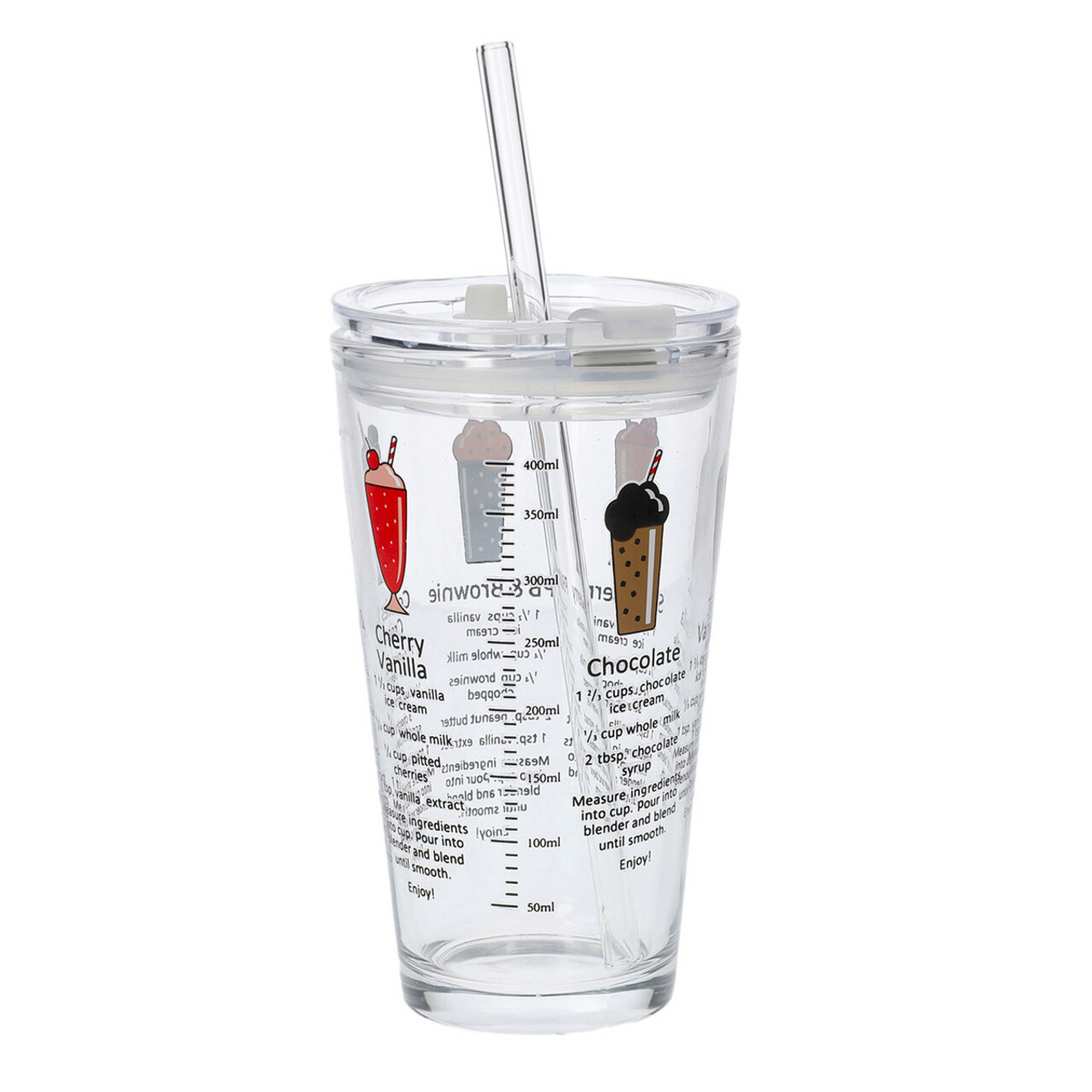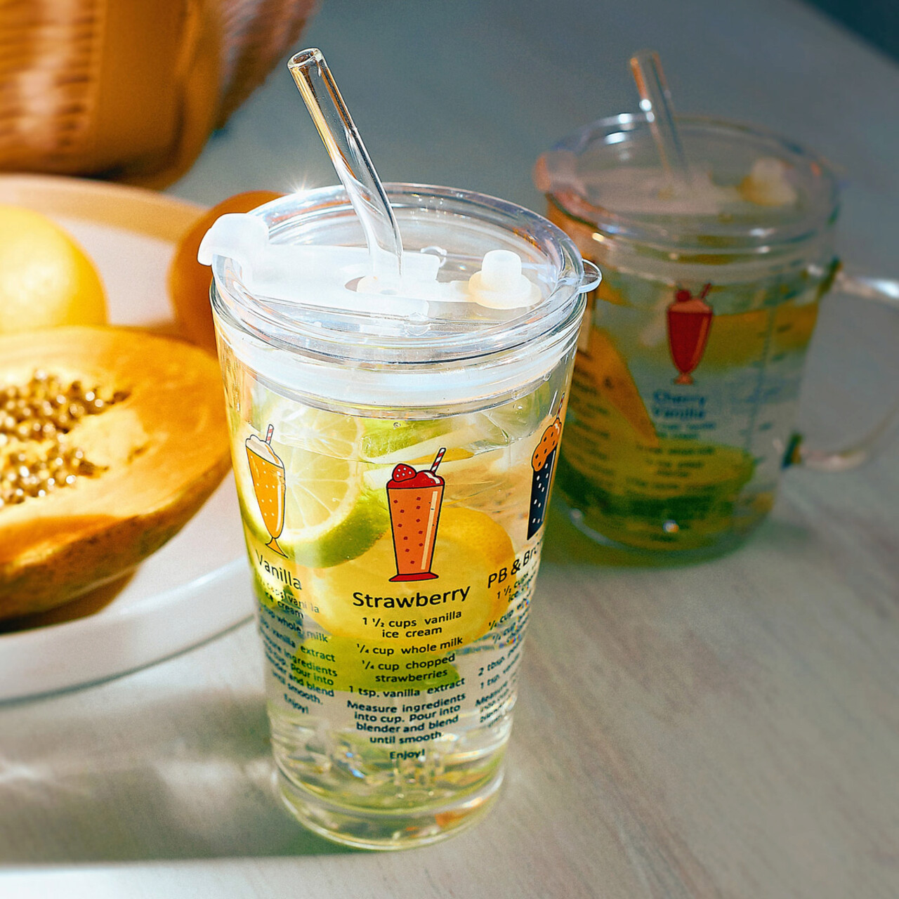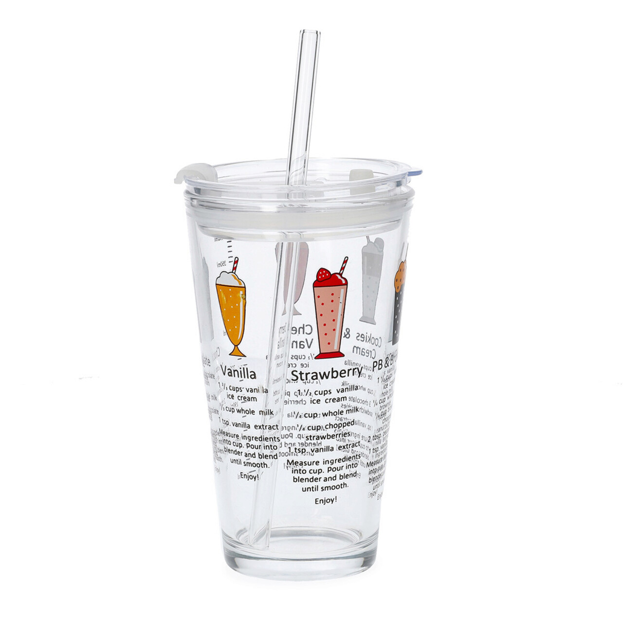 Pahar cu pai model reteta Embo, Homla, 500 ml, sticla/plastic, multicolor