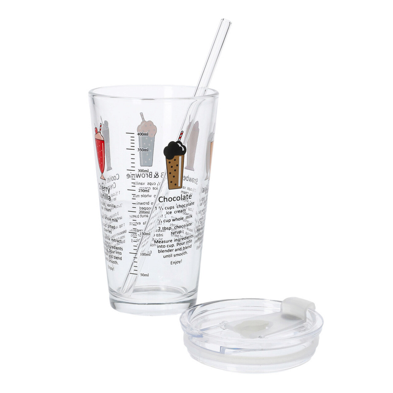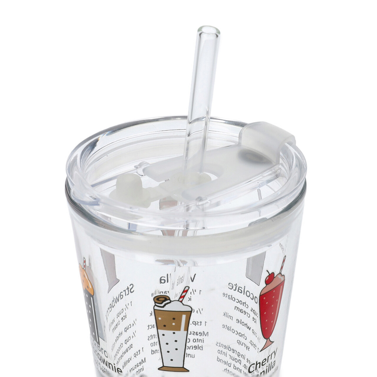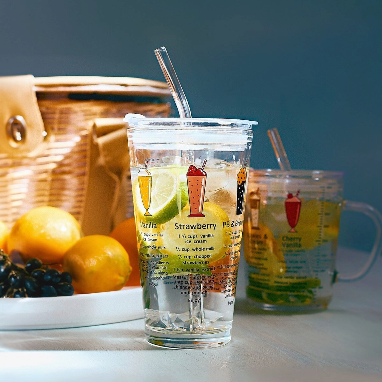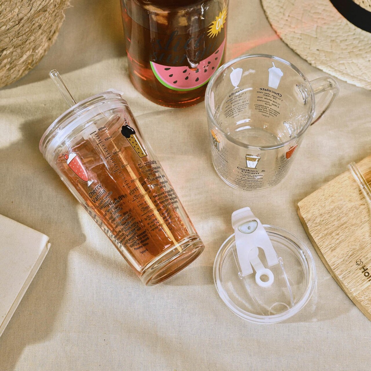 Pahar cu pai model reteta Embo, Homla, 500 ml, sticla/plastic, multicolor