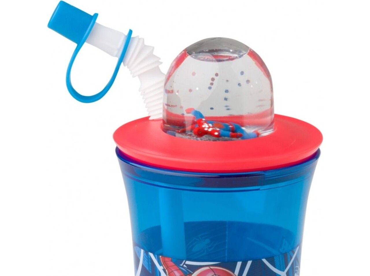 Pahar cu pai si capac cu figurina Spidey Spiderman, Marvel, 440 ml, plastic, multicolor