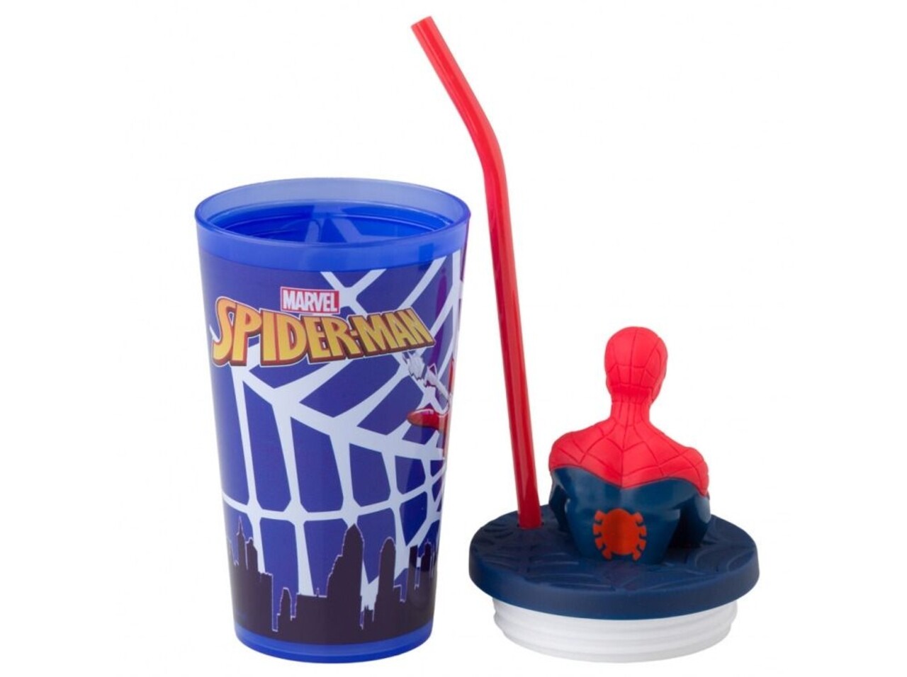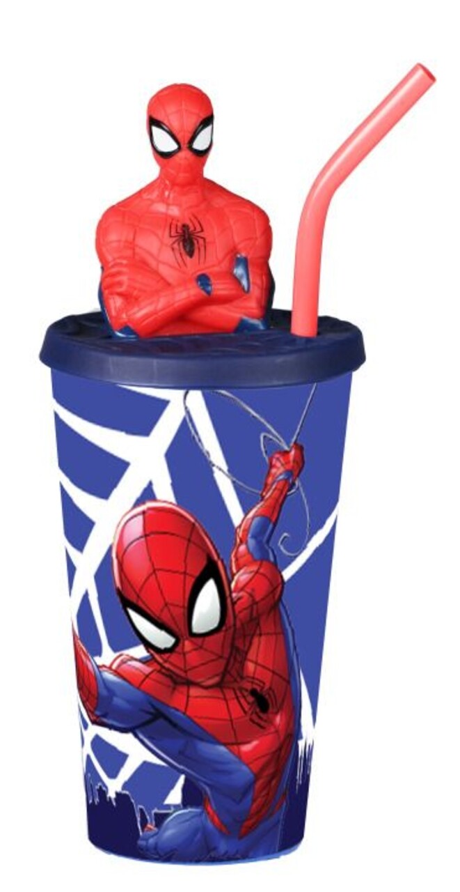 Pahar din plastic cu pai Spiderman, cu o capacitate de 440ml. Ideal pentru copiii care doresc sa serveasca bauturile favorite alaturi de personajele preferate.