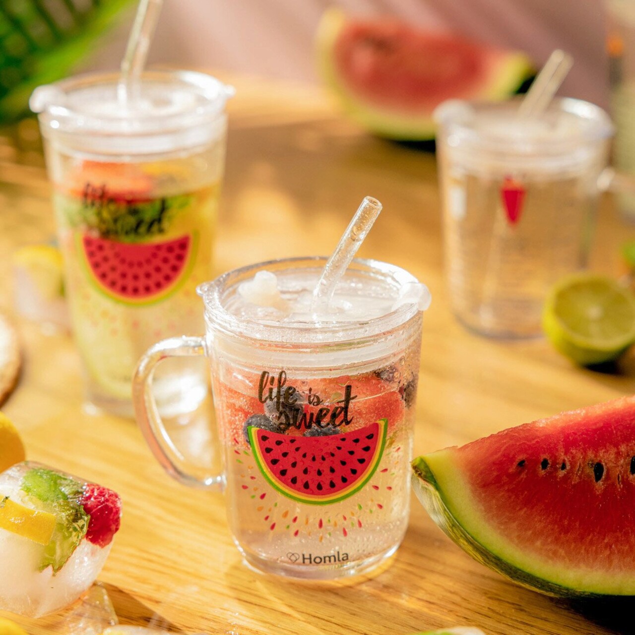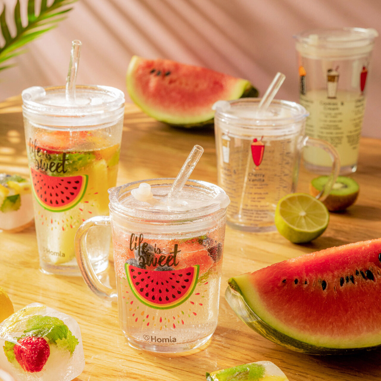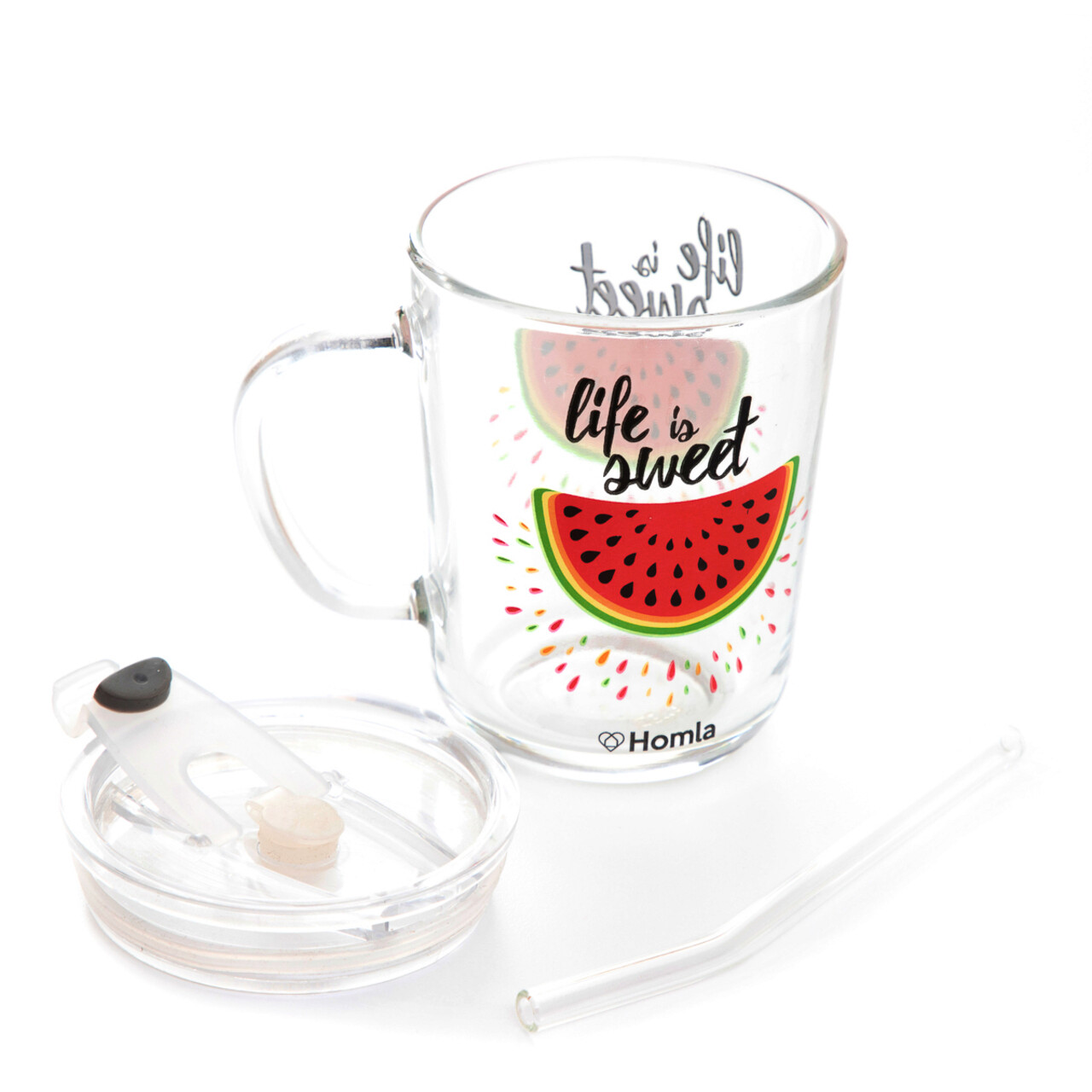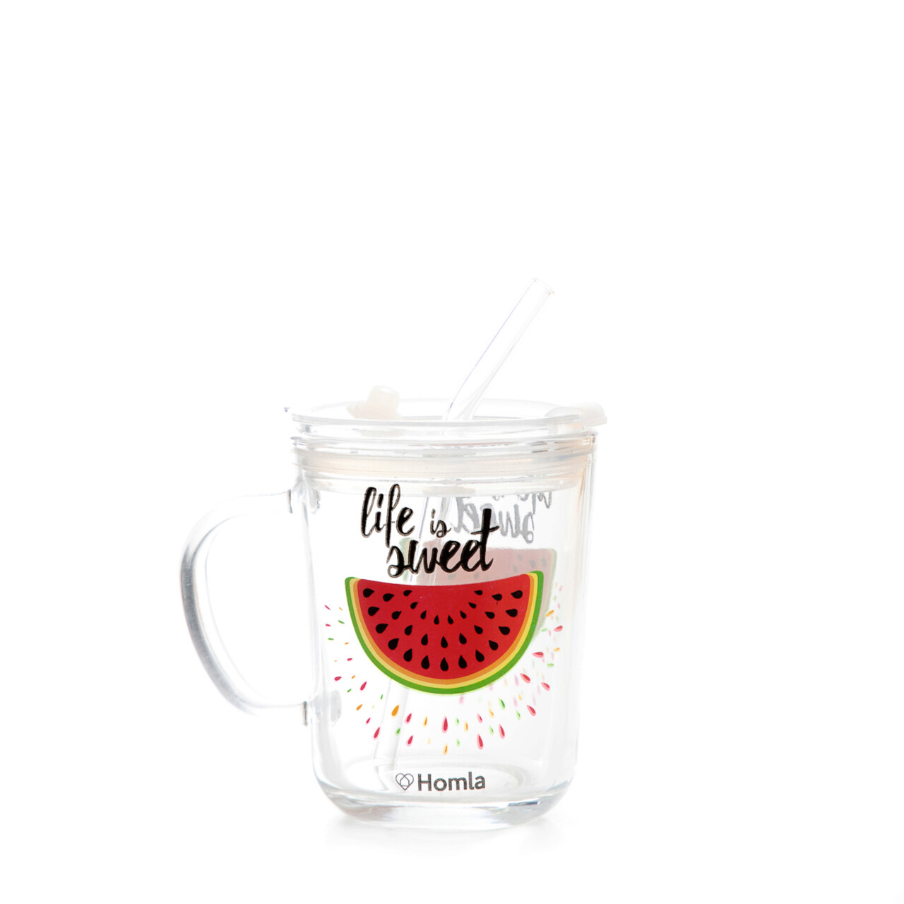 Pahar cu toarta si pai Embo, Homla, 400 ml, sticla/plastic, multicolor