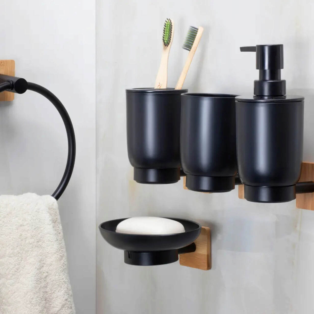 Pahar de baie suspendat Scandic, Jotta, 7.5 x 11.5 cm, plastic/bambus, cu banda adeziva 3M