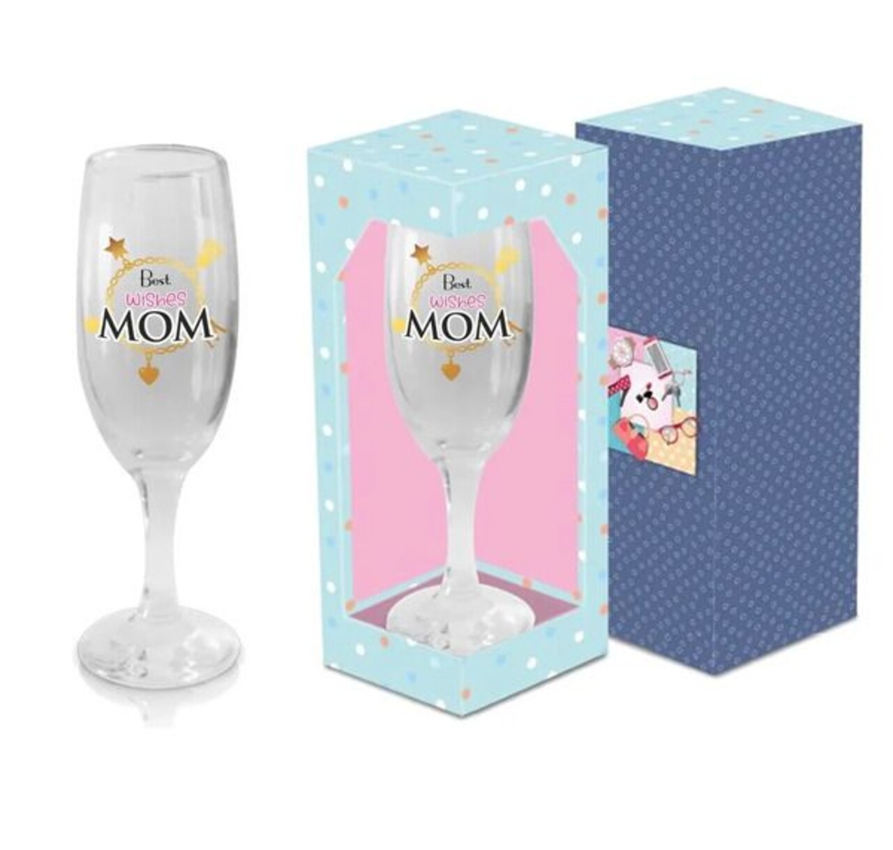 Pahar sampanie cu mesaj Best wishes Mom, 170 ml, sticla, transparent