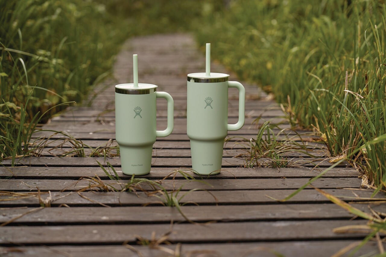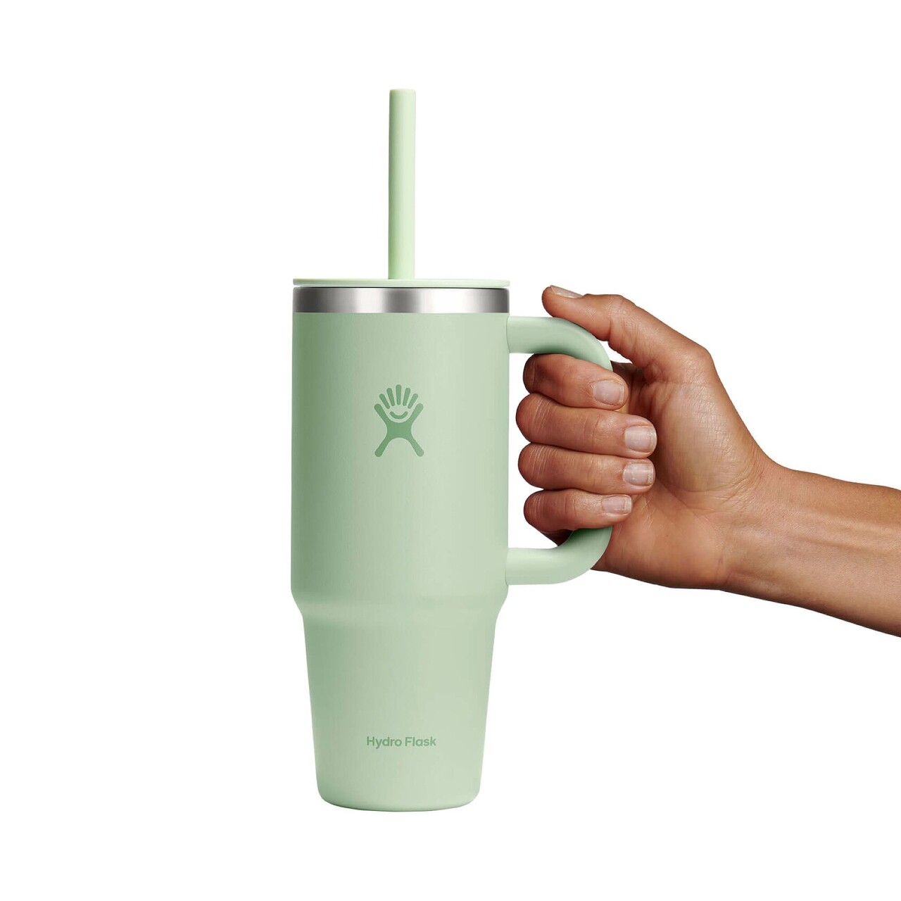 Pahar termos cu maner si pai pentru bauturi "All Around Travel", Cu capacitatea710 ml, Fabricat dinInox 18/8, MarcaHydro Flask.