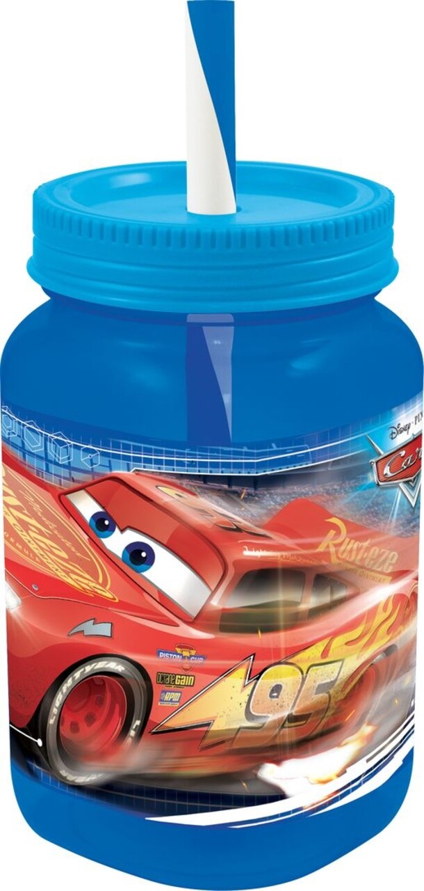 Pahar tip borcan cu pai Cars, Disney, 500 ml, plastic