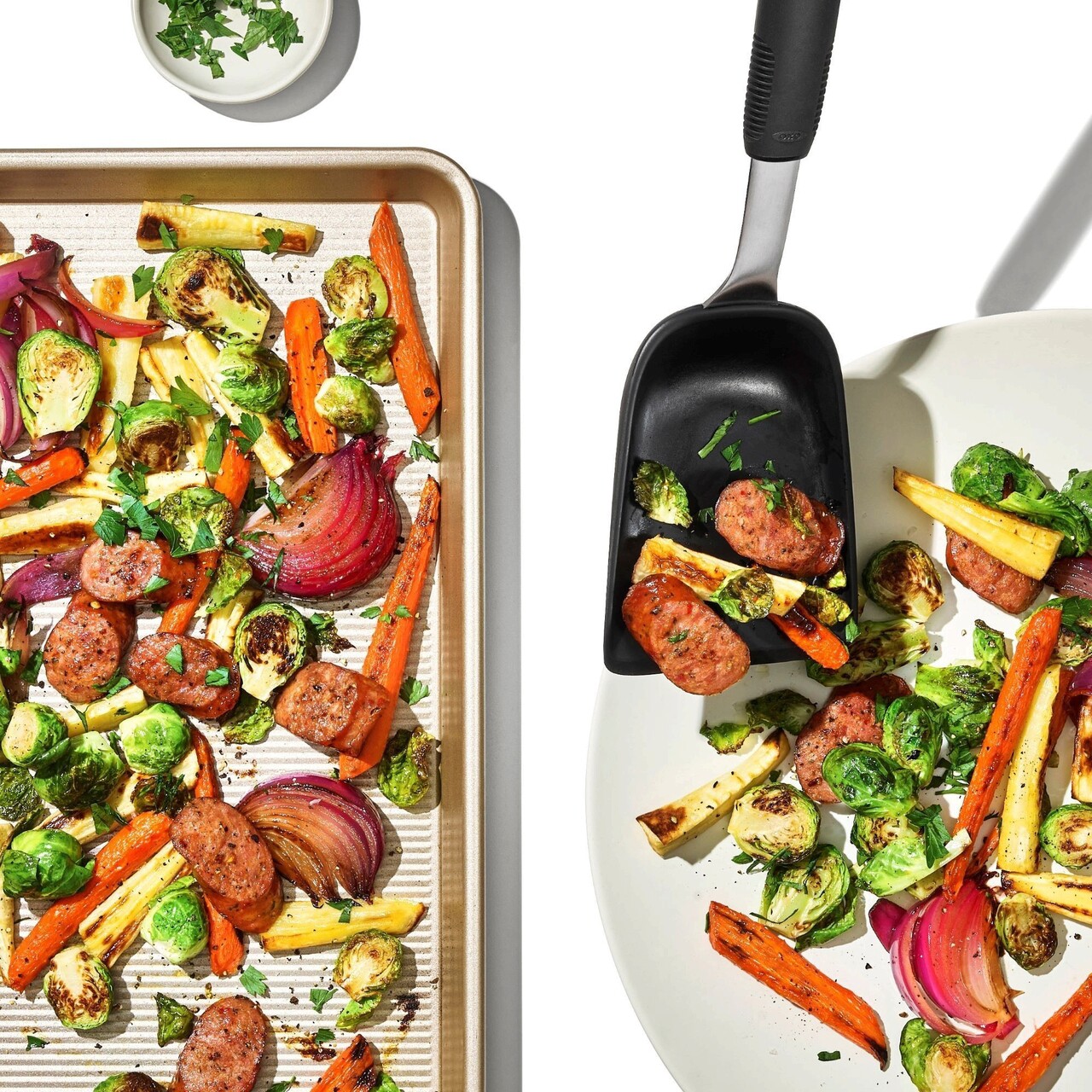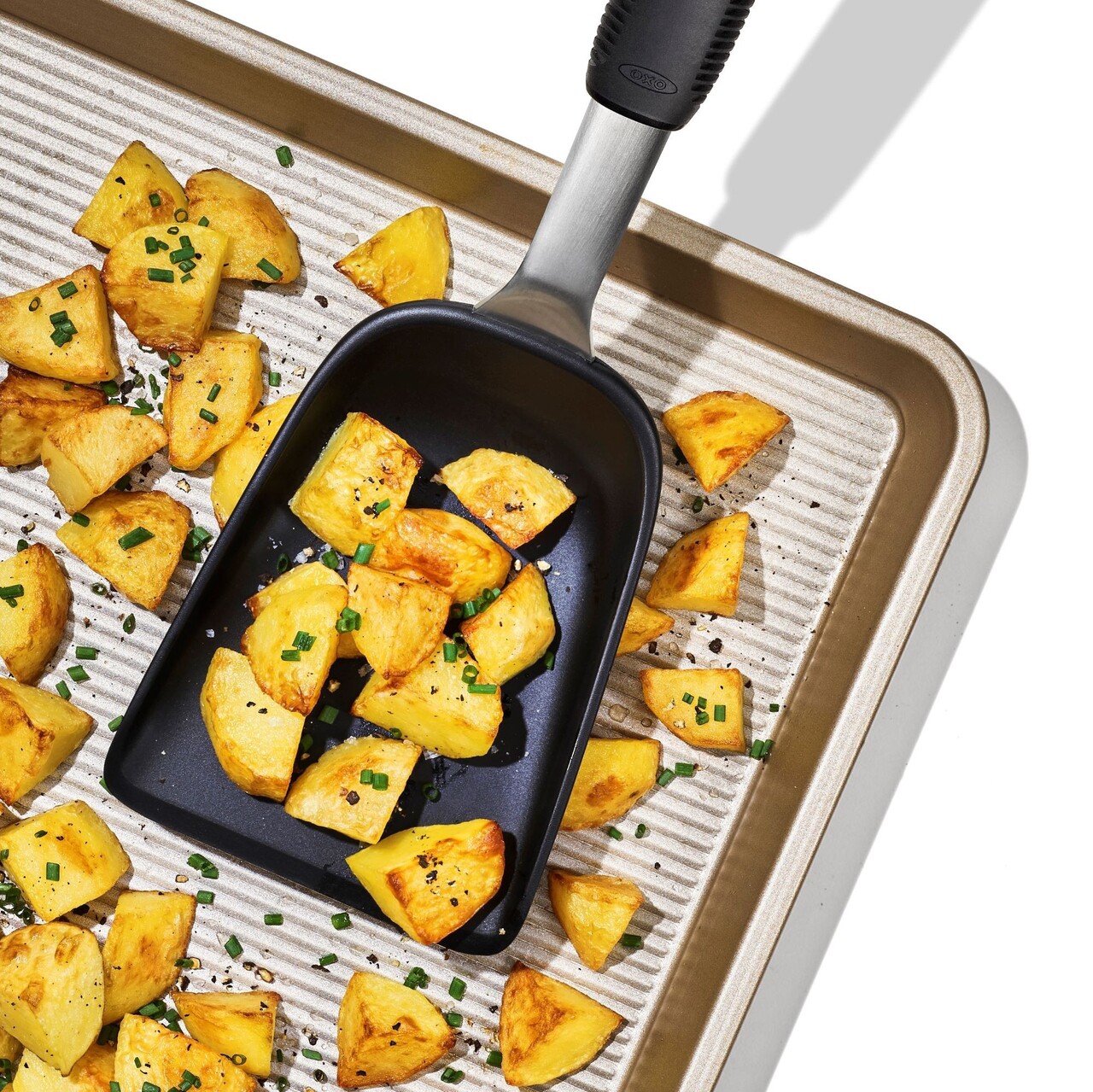 Indiferent daca gatiti pentru mai multe persoane, Pregatiti legume sau alte alimente prajite paleta OXO Good Grips a fost special conceputa pentru a va ajuta sa transferati alimentele cu usurinta.