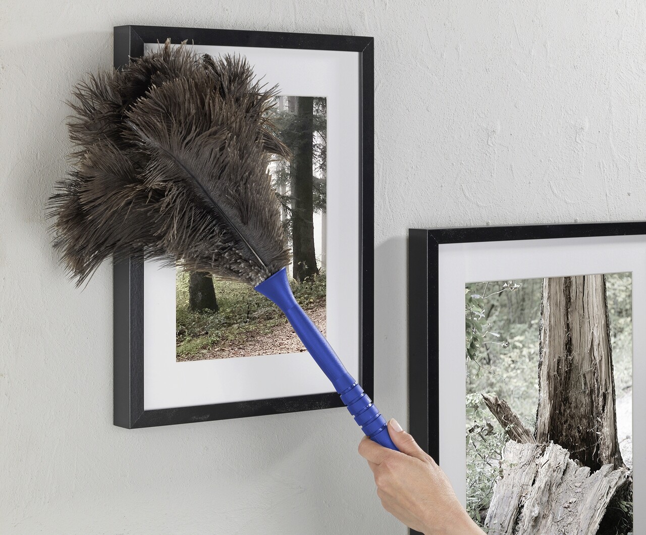 Pamatuful realizat din pene de strut 100% cu maner din otel si plastic este ideal pentru a scapa de praful nedorit din zonele greu accesibile. Manerul este extensibil si se poate prelungi pana la 180 cm. Datorita acestui detaliu puteti ajunge sa stergeti praful la inaltimi de pana la 4 metri. Pamatuful este ideal pentru persoanele care sufera de alergii. De asemenea, este ideal pentru suprafetele sensibile precum mobilier din lemn lacuit, sticla, oglinzi, vitrine dar si vaze, sculpturi, tastatura etc. Se curata foarte usor scuturandu-l in exterior, poate fi clatit din cand in cand cu amestec de apa si detergent usor si lasat sa se usuce in aer liber.
