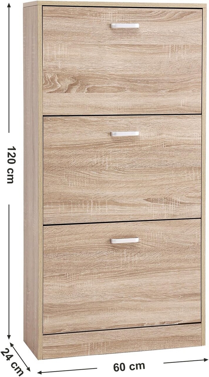 Pantofar cu 3 usi, Vasagle, 12-18 perechi pantofi, 60 x 24 x 120 cm, maro deschis