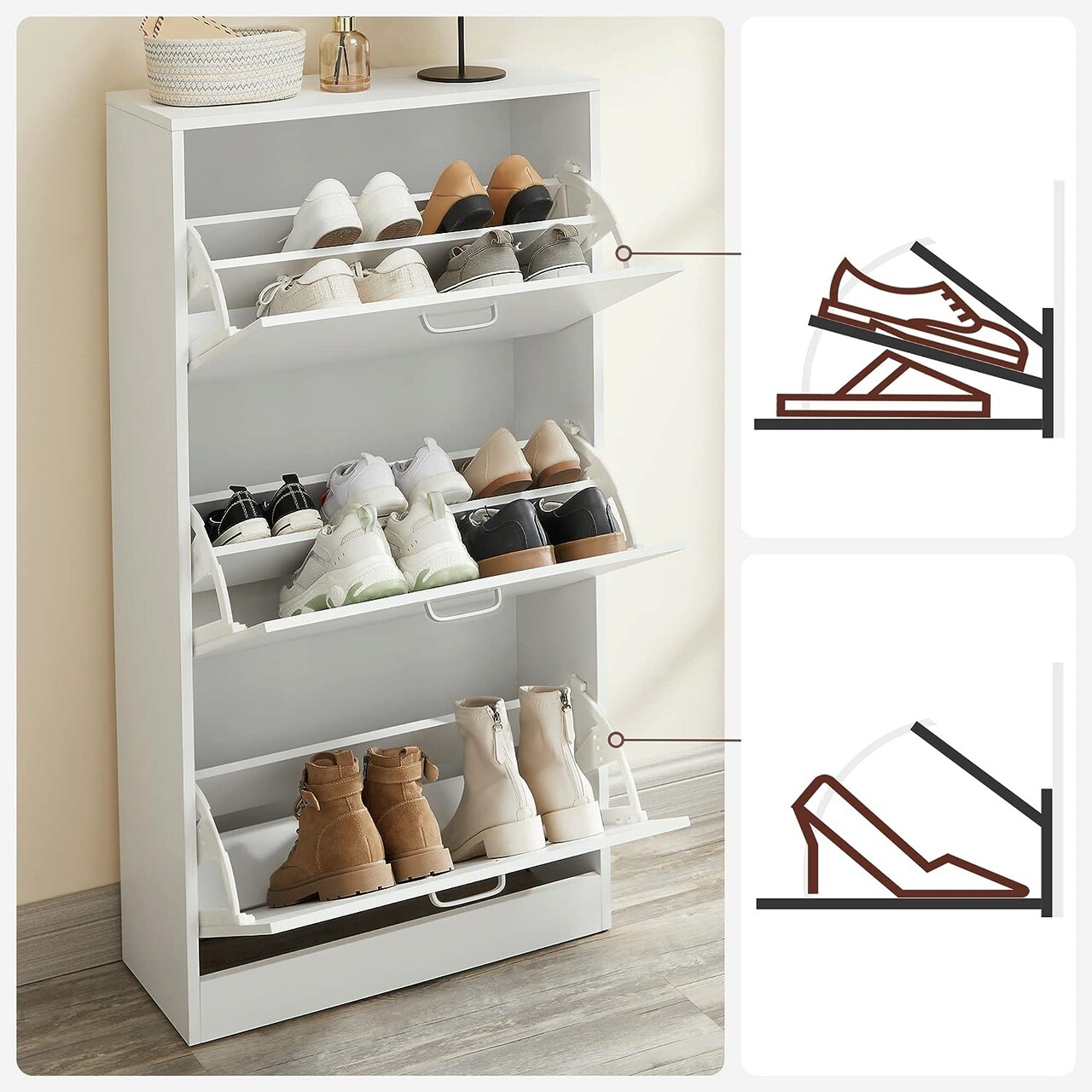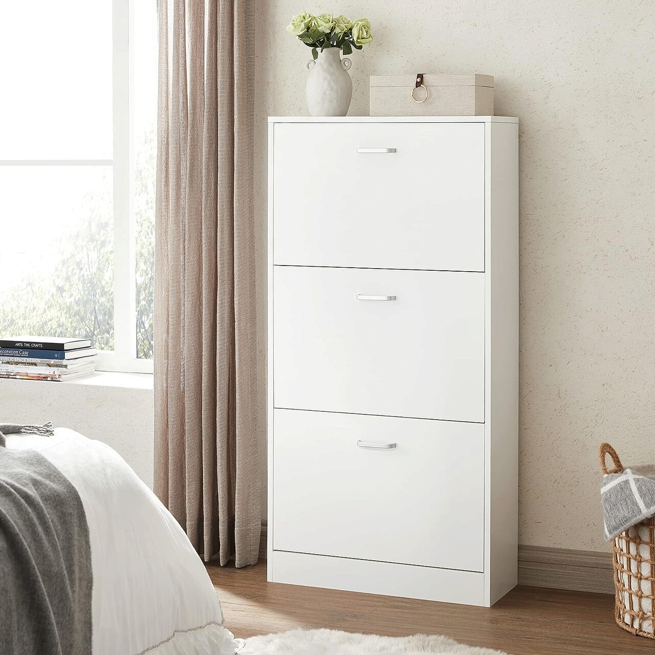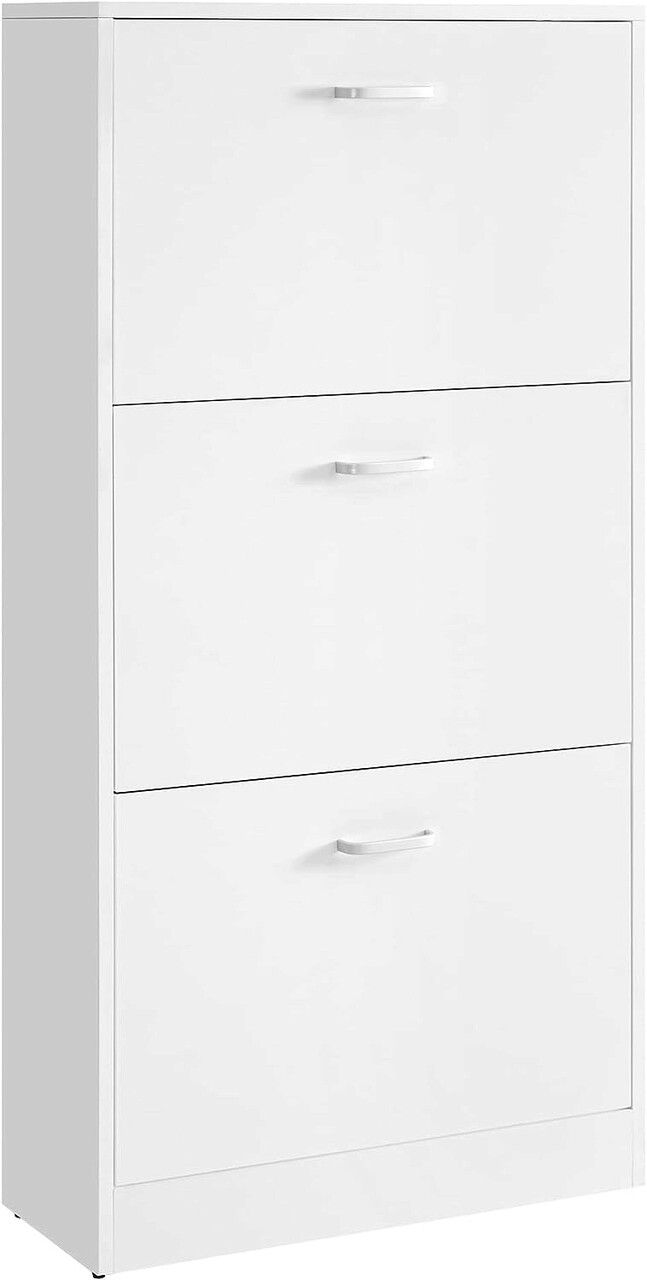 Pantofar cu 3 usi, Vasagle, 12-18 perechi pantofi, 60 x 24 x 120 cm, alb