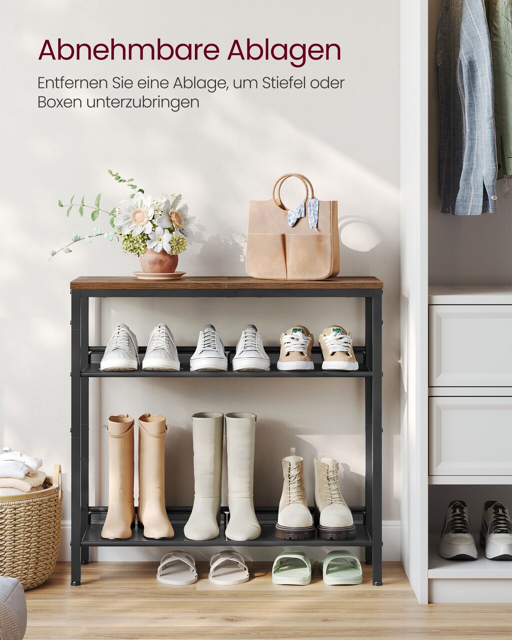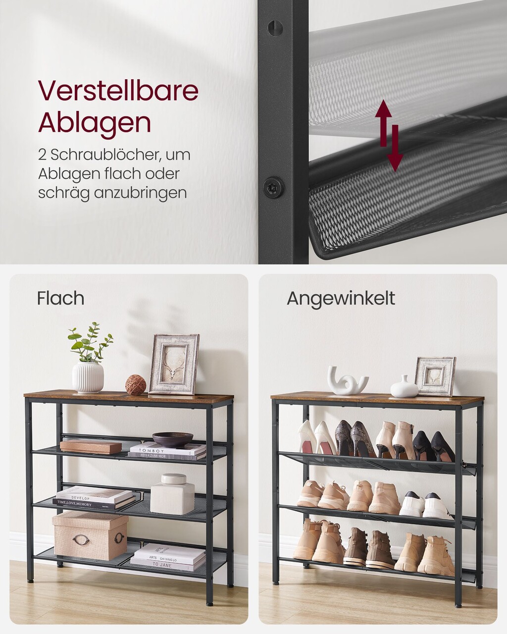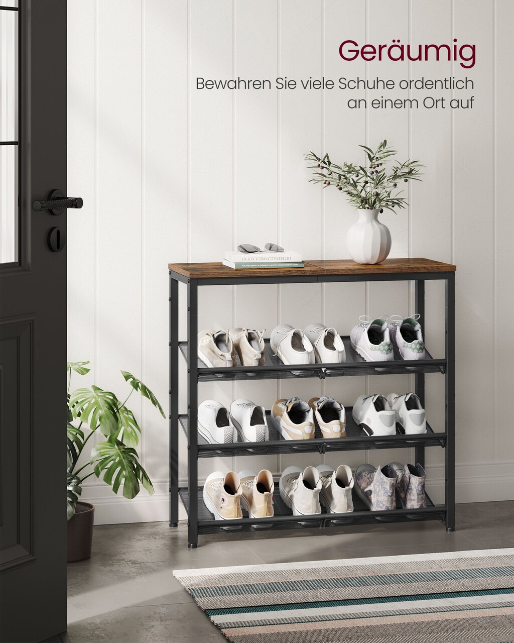 Pantofar cu 4 rafturi, Vasagle, 75x30x73 cm, PAL/otel, maro
