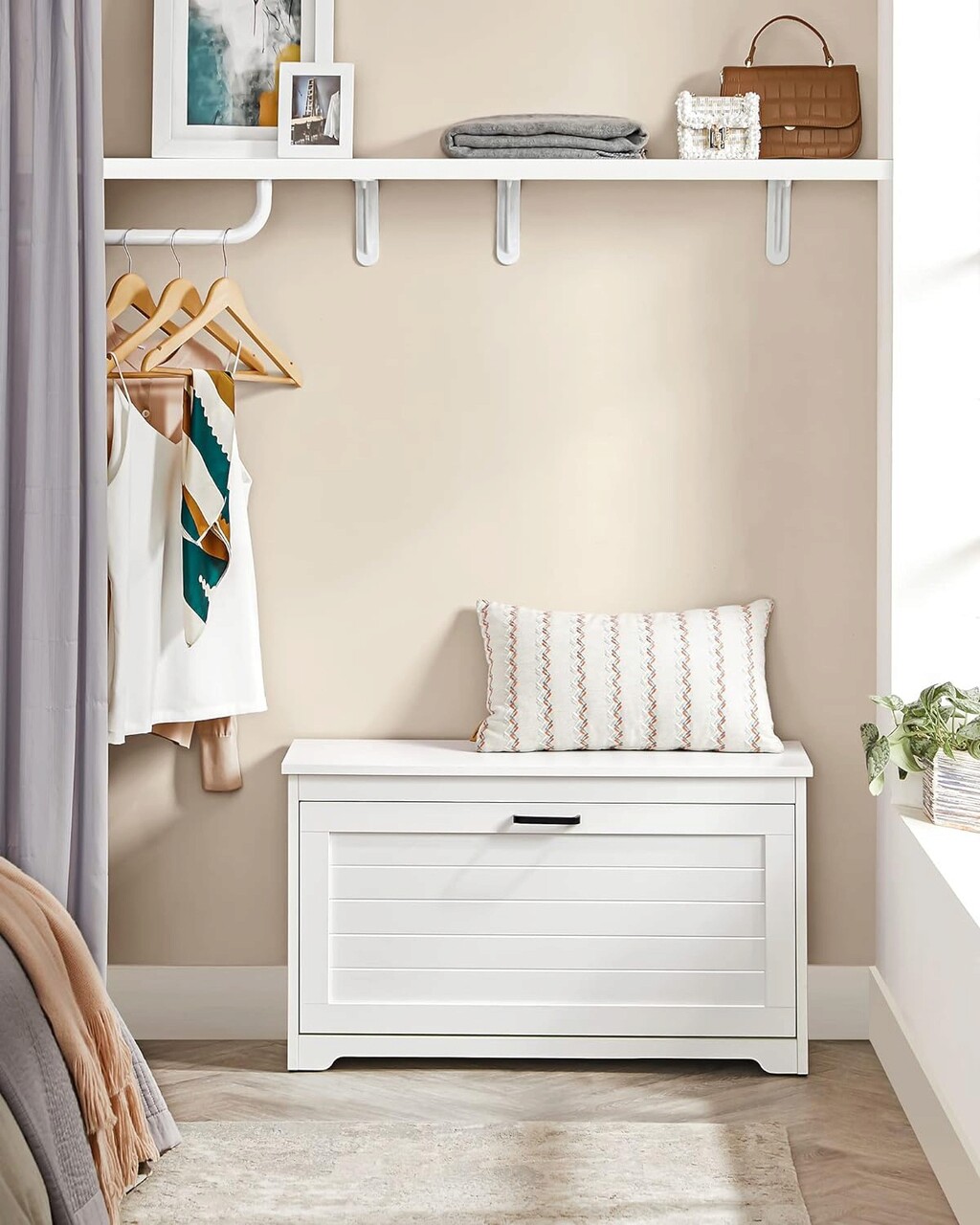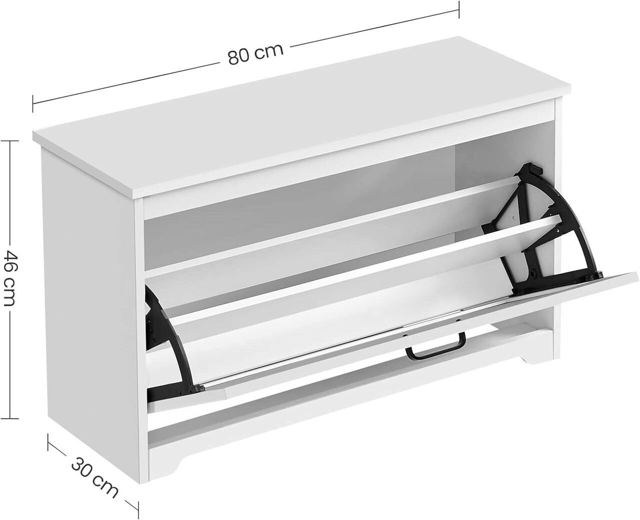 Pantofar cu bancheta Vasagle, 6-8 perechi pantofi, max 100 kg, 80x30x46 cm, PAL, alb mat