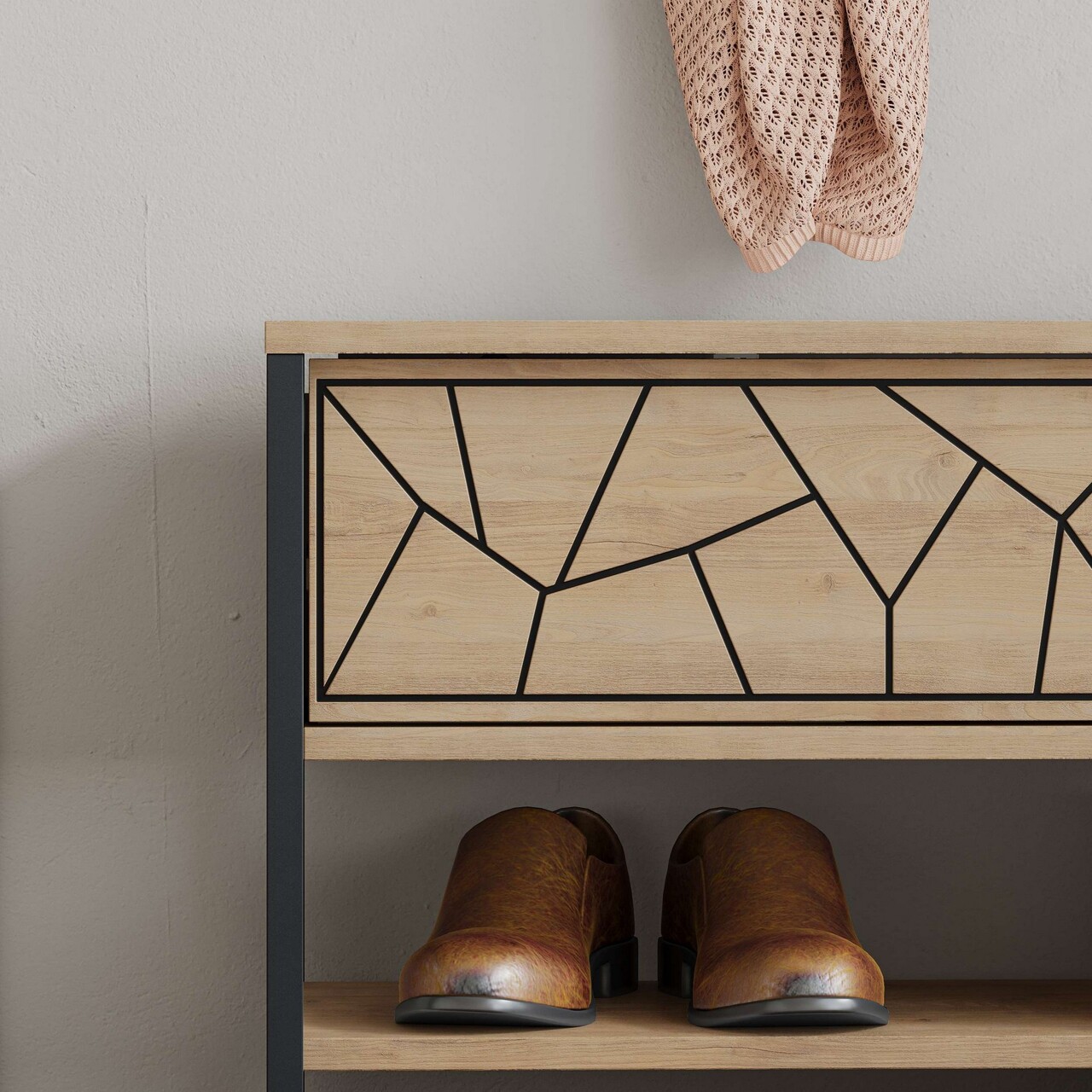 Pantofar, Decortie, Inola Shoe Bench, 105x47x37 cm, PAL, Safir / Stejar
