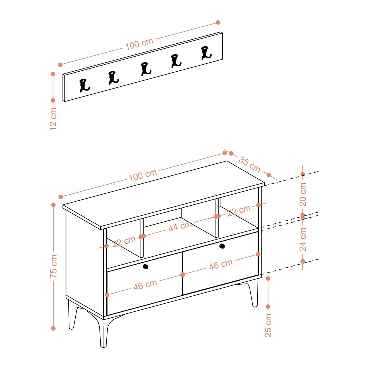 Pantofar, Emerald, Daisy, 100x75x35 cm, PAL, Nuc / Negru