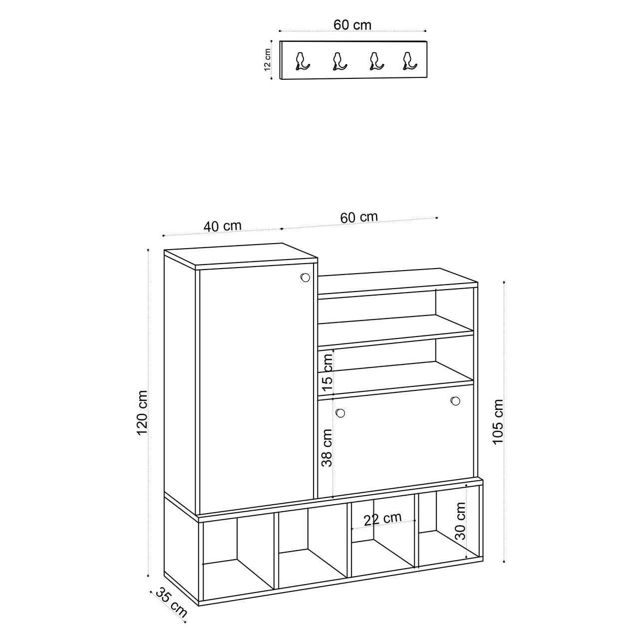 Dimensiunea cabinetului: Latime: 100 cm Inaltime: 120 cm Adancime: 35 cm