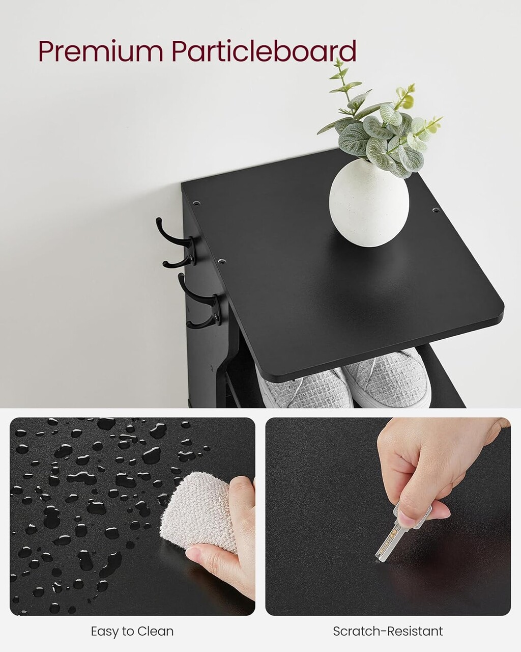 Depozitare convenabila cu agatatori Agatati-va cheile si borseta pe carligele raftului ingust pentru pantofi pentru a le lua rapid in timpul agitatiei de dimineata. Mai mult, carligele pot fi instalate la stanga sau la dreapta, dupa cum este necesar.