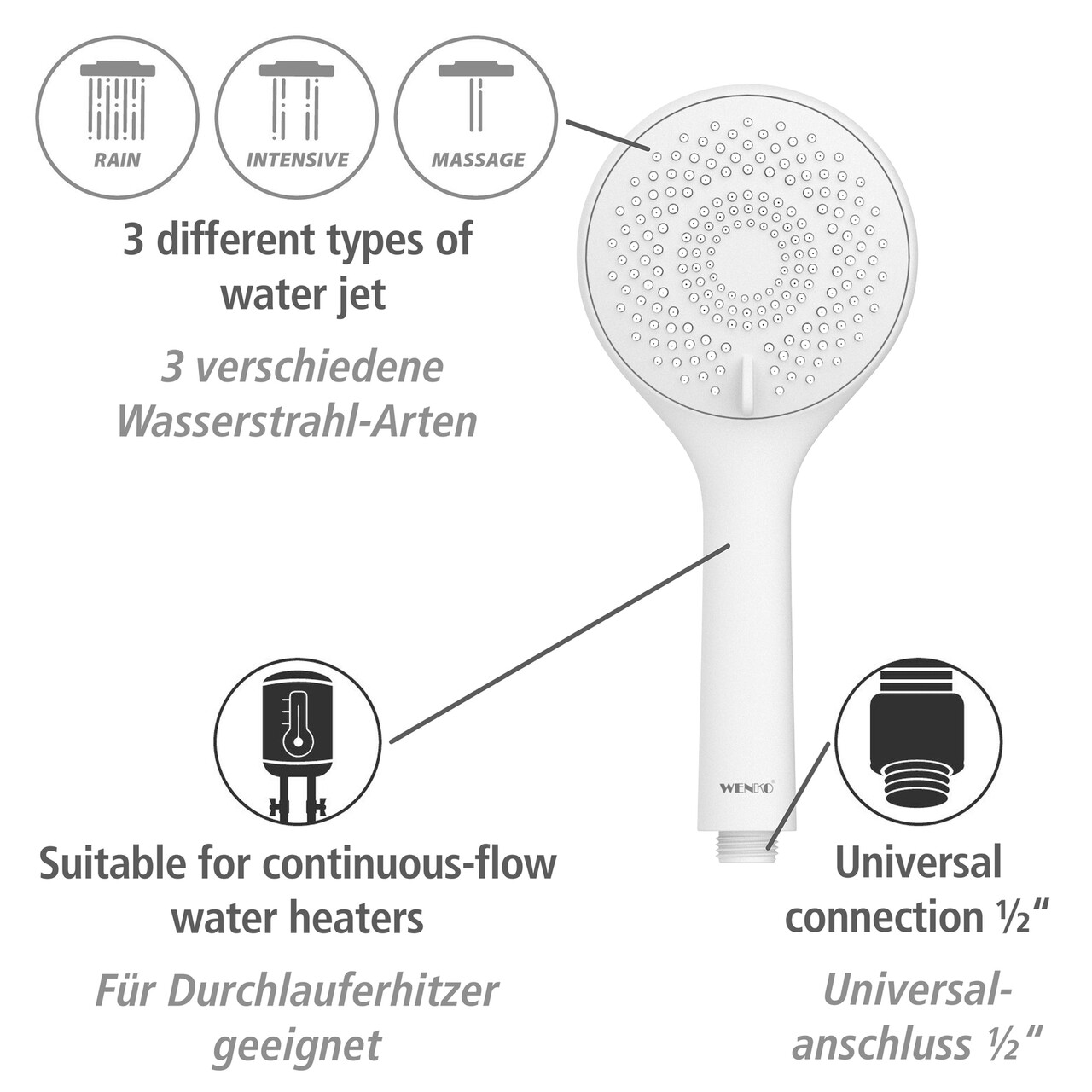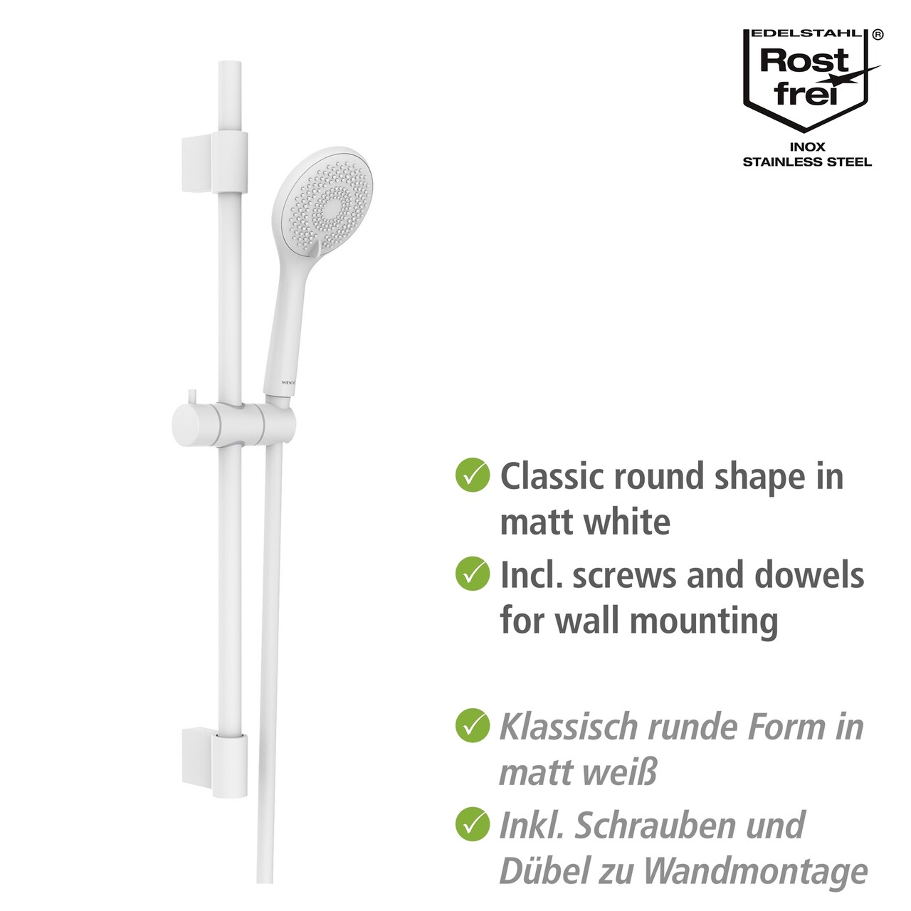Cu setul de dus Watersaving de la WENKO, aveti toate piesele de care aveti nevoie pentru un set de dus elegant.