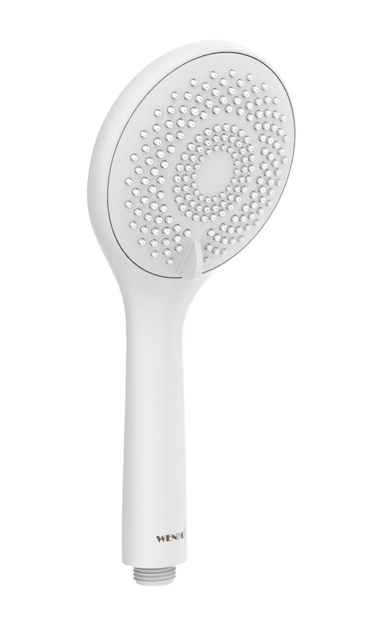 Capul de dus inclus economiseste 40% apa. Acest lucru este asigurat de o insertie care mentine constant debitul de apa. In acelasi timp, se folosesc mai putin de 8 litri de apa pe minut (la presiunea apei de 3 bar). Capul de dus (Ø 11 cm) din plastic ABS robust are 3 tipuri diferite de pulverizare si este, de asemenea, usor de curatat. Orice reziduu de calcar poate fi indepartat cu usurinta de pe butoanele sale cu degetele.