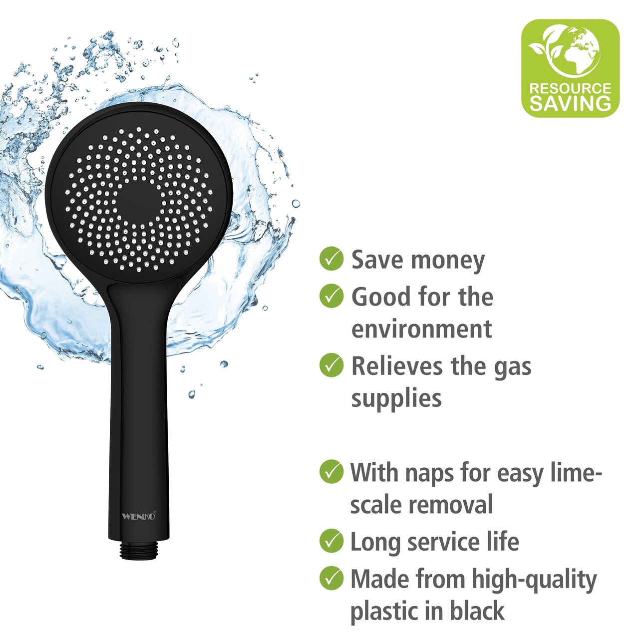 Para de dus Water Saving II, Wenko, 9.5 cm, ABS, negru
